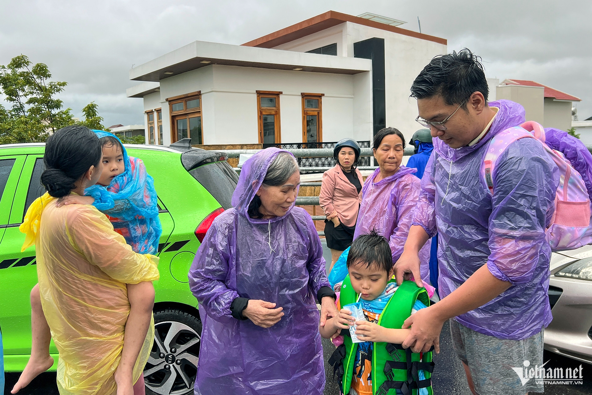 May mắn, đến chiều 20/11, lực lượng cứu hộ đi qua đã phát hiện và ưu tiên đưa những gia đình có người già, trẻ nhỏ ra ngoài, trong đó có gia đình anh Trí.