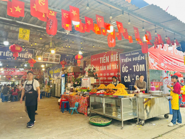 Bánh tôm, bún ốc... là những món đặc sản của người dân Tây Hồ dành cho khách thập phương về lễ Phủ Tây Hồ.