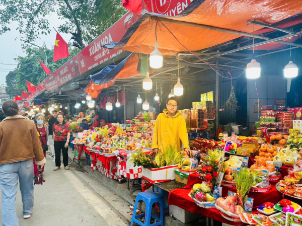 Hàng chục cửa hàng kinh doanh lễ vật như hương, hoa, quả, bánh... phục vụ khách thập phương suốt mùa lễ.