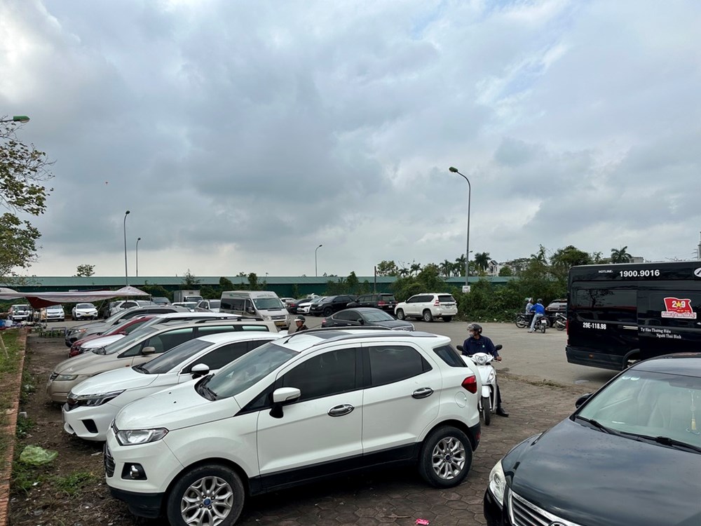 Bãi đỗ xe ô tô đang dần kín chỗ ngay từ đầu giờ chiều ngày 2.3 (tức ngày 14 tháng Giêng)