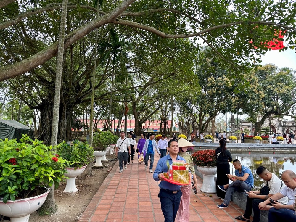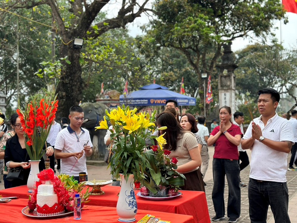 Nhiều du khách đến sớm ngay từ đầu giờ sáng dâng lễ tại đền Trần