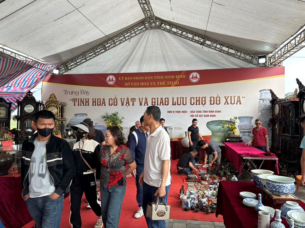 Gian trưng bày "Tinh hoa cổ vật và giao lưu chợ đồ xưa" tại Khu di tích đền Trần thu hút đông đảo du khách