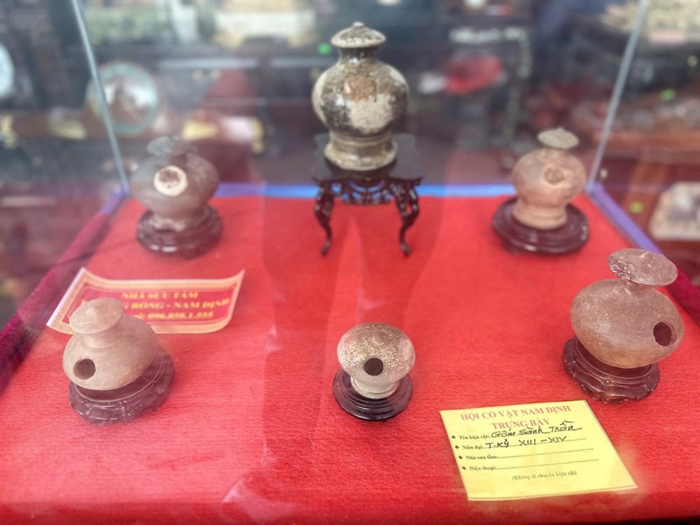 Nhiều cổ vật gốm sành thời Trần từ thế kỷ XIII - XIV được trưng bày tại gian trưng bày "Tinh hoa cổ vật và giao lưu chợ đồ xưa"
