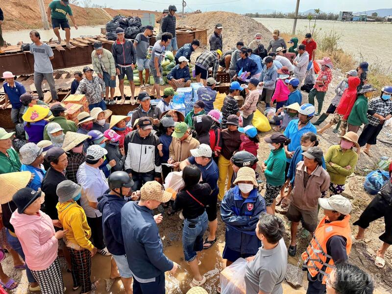 Người dân nơi rốn lũ tập trung nhận quà cứu trợ. Ảnh: Hiền Mai.