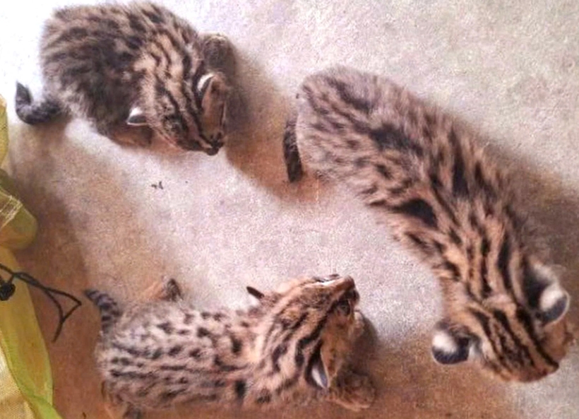 Chị An cho biết, trong quá trình thu hoạch rẫy mía của gia đình, đã phát hiện 3 cá thể mèo rừng con đi lạc. Chị An mang về nhà chăm sóc, đồng thời chủ động liên hệ cơ quan chức năng để giao nộp theo đúng quy định của pháp luật.