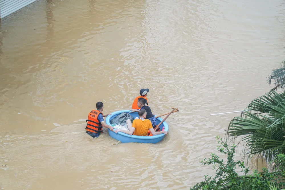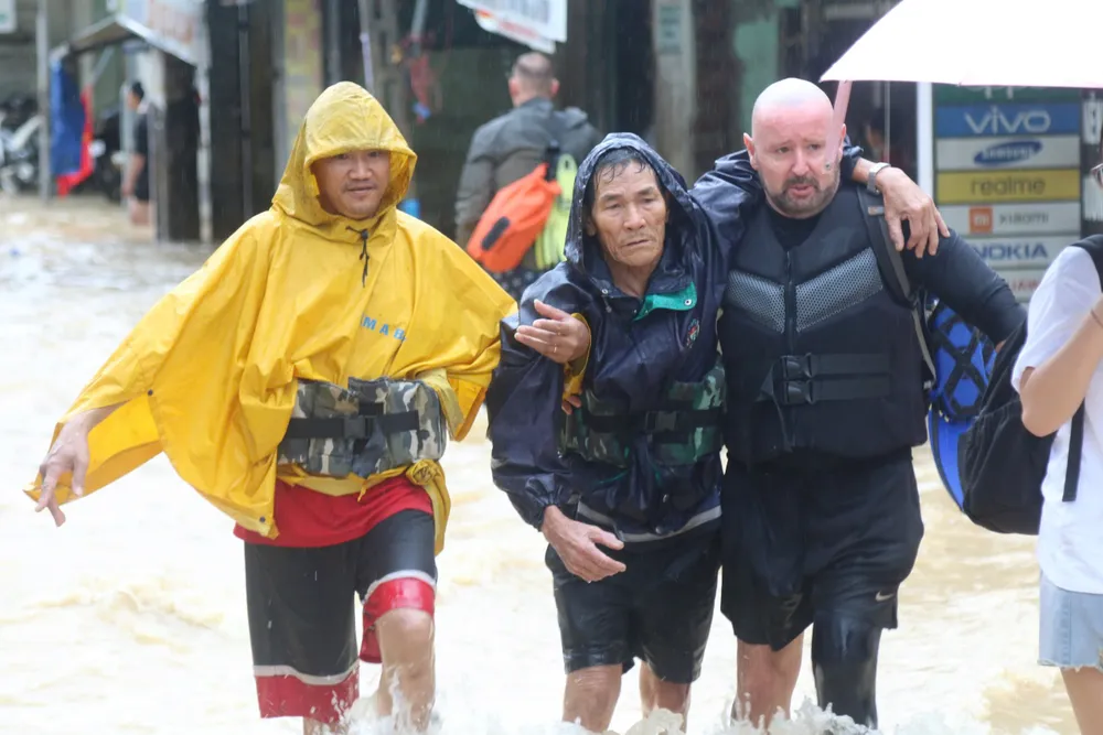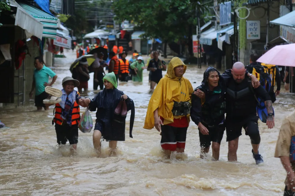 Ngoài lực lượng cứu nạn, cứu hộ chuyên nghiệp, một số người nước ngoài có kỹ năng cũng tham gia giúp người dân di tản khỏi khu vực ngập nặng.