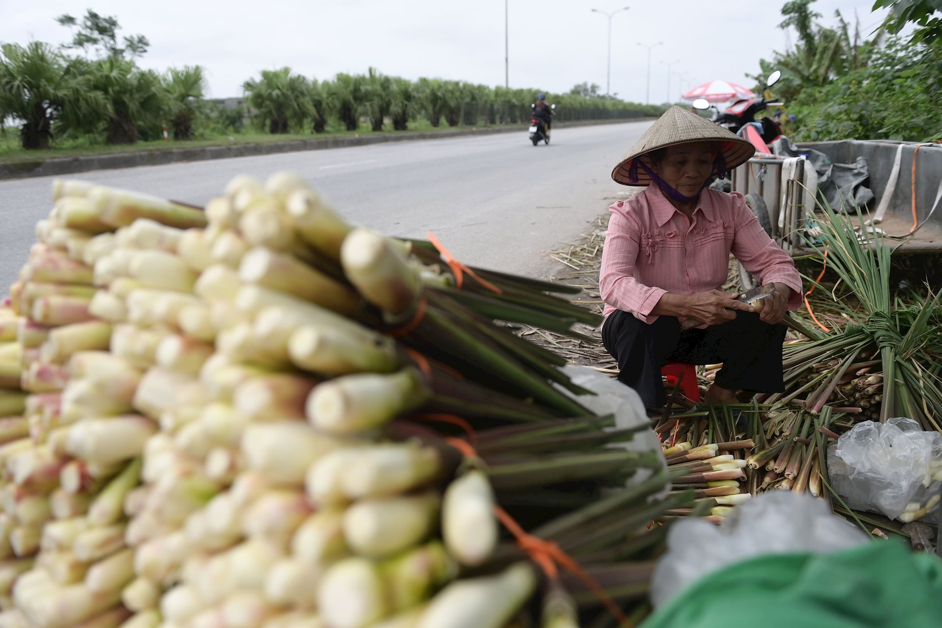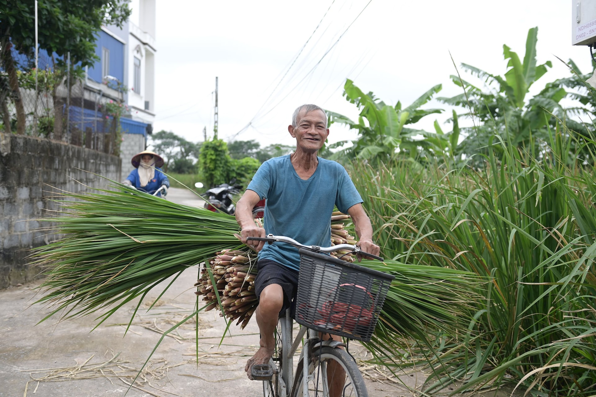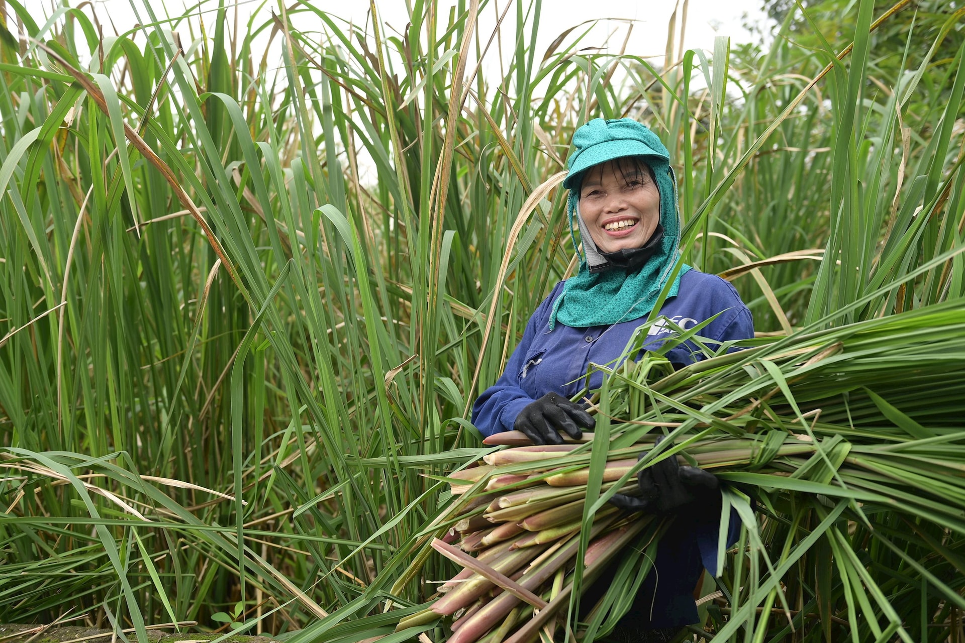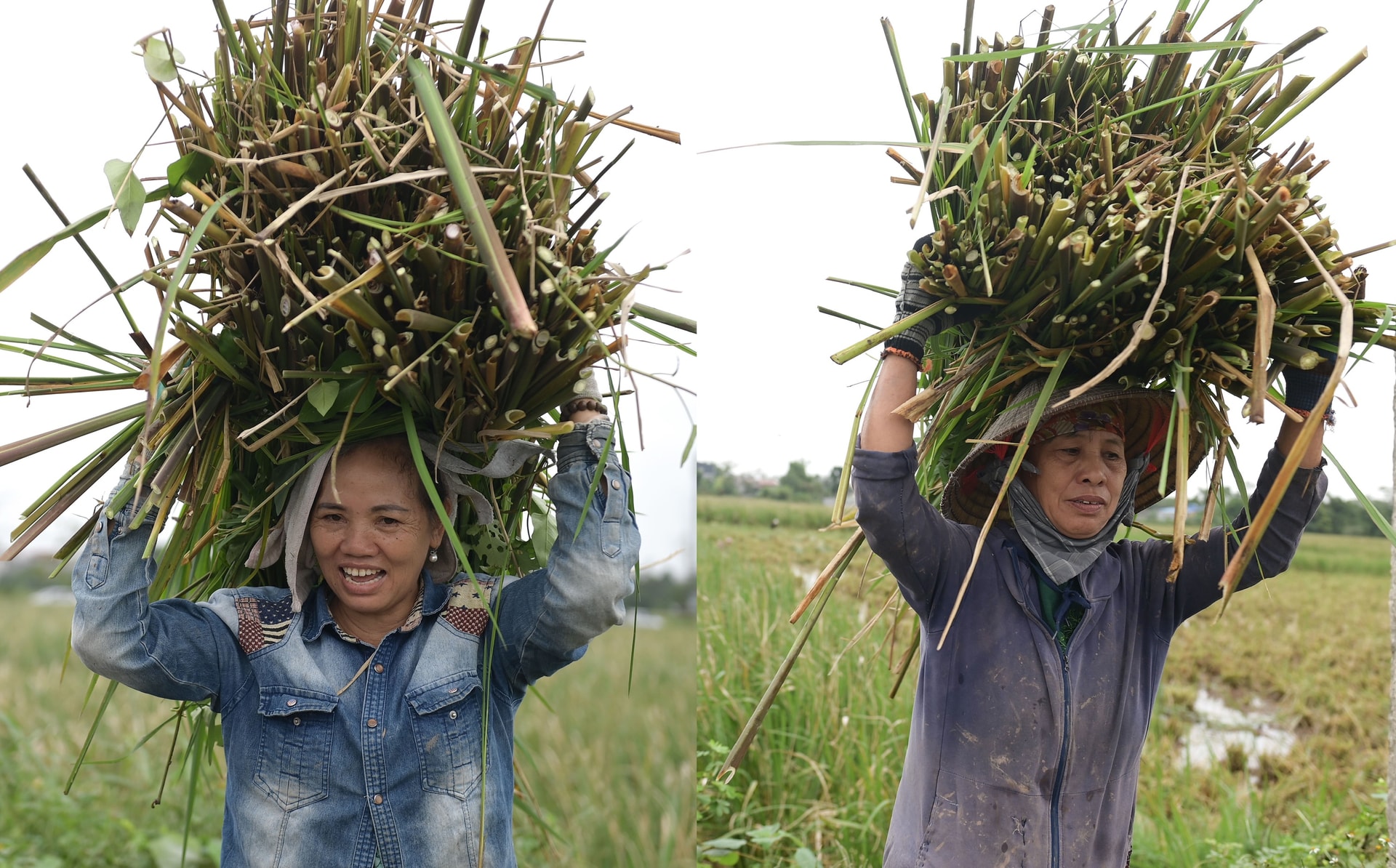 Không chỉ củ niễng mang lại nguồn thu, phần lá sau khi cắt cũng được các thương lái mua về sấy khô, làm nguyên liệu sản xuất đồ thủ công mỹ nghệ.