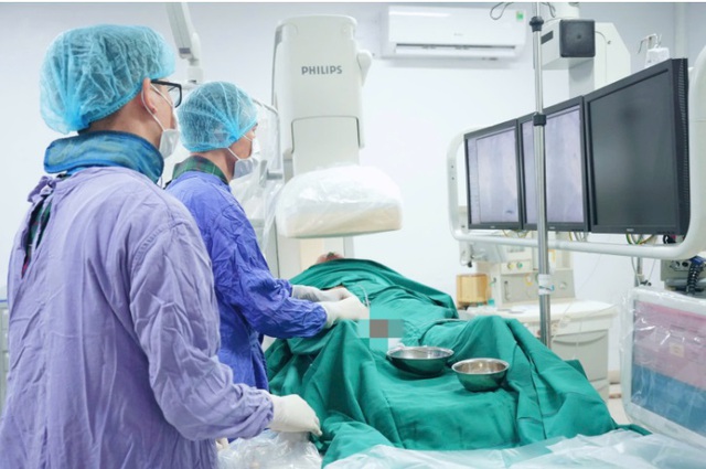 ThS.BS Giáp Hùng Mạnh – Trưởng khoa Thần kinh, Vật lý trị liệu – Phục hồi chức năng, Bệnh viện Bãi Cháy cùng ê-kíp đã tiến hành chụp mạch não, phát hiện tắc gốc động mạch đốt sống trái, trong khi động mạch đốt sống phải có kích thước nhỏ. Ê-kíp quyết định hút huyết khối tại vị trí tắc, tái lập một phần dòng máu lưu thông nhưng phát hiện hẹp nặng gốc động mạch đốt sống trái. Các bác sĩ tiếp tục nong bóng và đưa ống hút chuyên dụng qua vị trí hẹp.