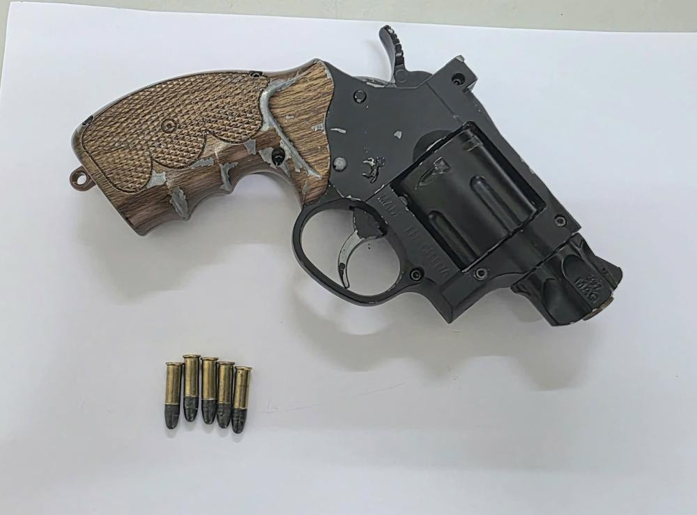 Công an xã thu giữ tang vật gồm 1 khẩu súng ngắn và 5 viên đạn.