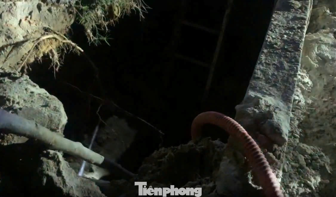 Sau đó, một máy múc được điều động tới hiện trường. Do không gian phía dưới nhỏ hẹp, máy múc hỗ trợ không hiệu quả. Phía dưới hố sâu khoảng 2 m, người bị nạn mặt tím tái, có dấu hiệu khó thở.