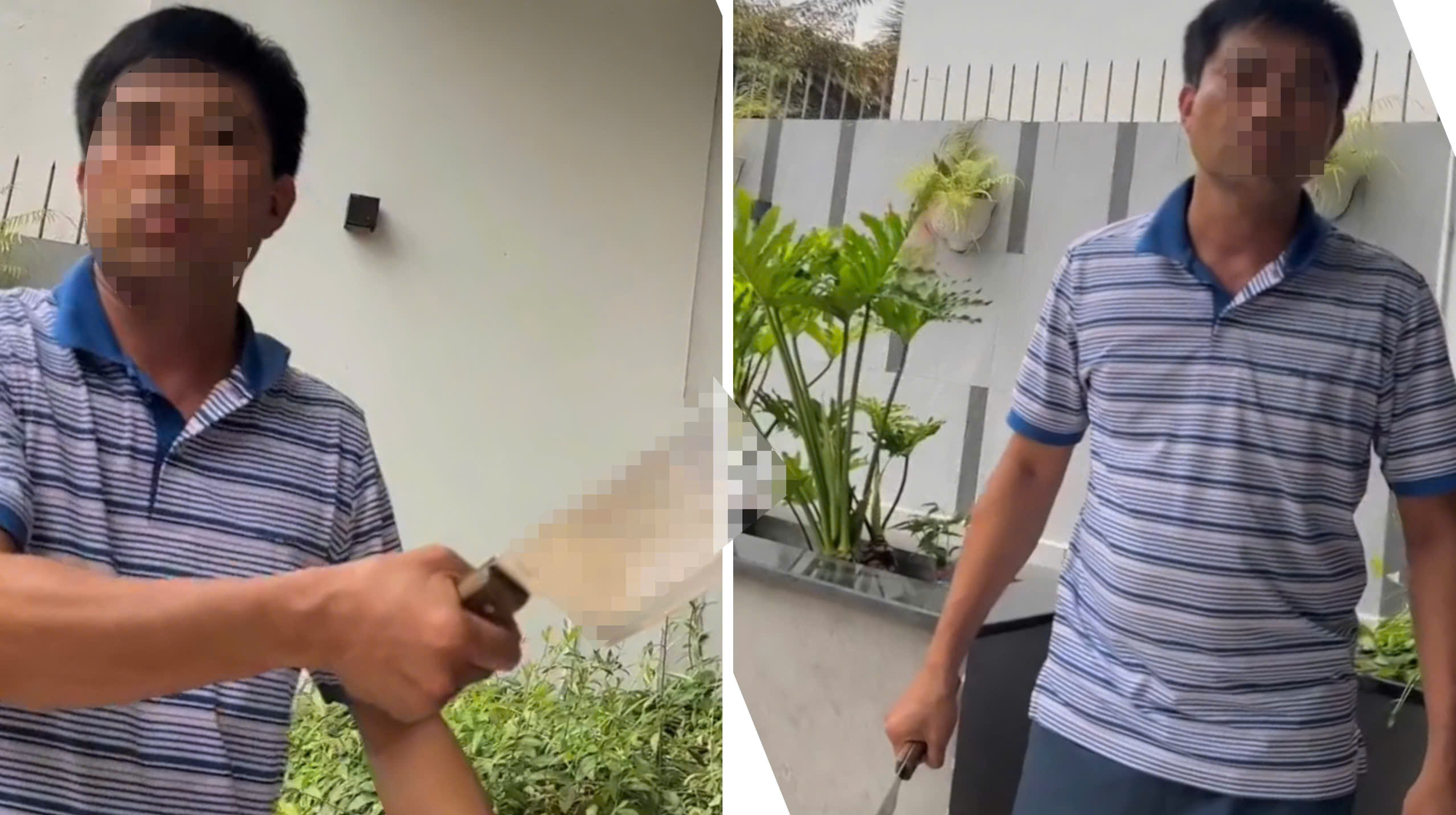 Công an đang xác minh clip người đàn ông cầm dao đe dọa thợ khóa ở TP.HCM. Ảnh cắt từ clip