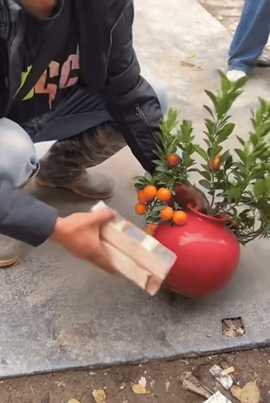 (Video ghi lại cảnh tiểu thương đập vỡ chậu cây quất trước mặt khách hàng để chứng minh cây bên trong là cây thật. Nguồn: Nguyễn Dũng)