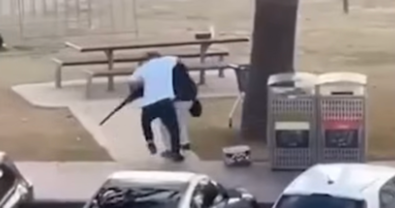 Người đàn ông đang giằng co súng với kẻ xả súng. (Ảnh chụp màn hình)