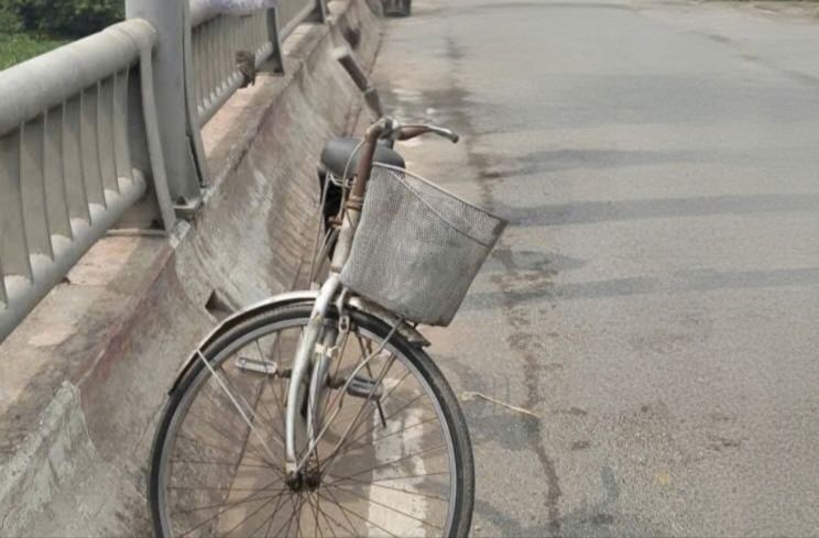 Chiếc xe đạp nạn nhân để lại trên cầu Đức Hòa. Ảnh: CTV
