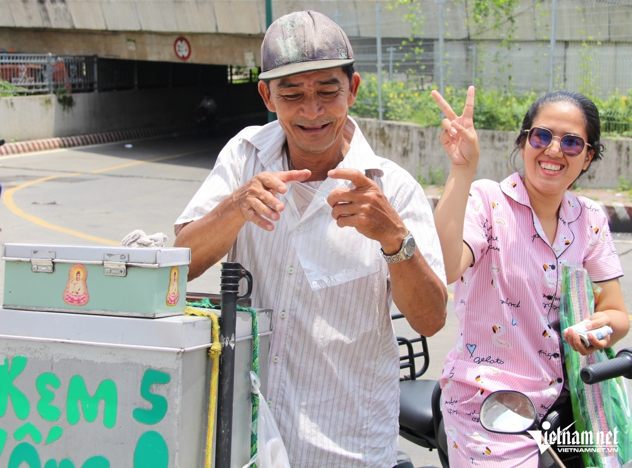 Đó là ông Nguyễn Minh Hiền (SN 1967, TPHCM) – người bán kem ống, món ăn ưa thích của chị Diễm. Chị đã ăn kem của ông từ thuở bé và đến nay, hầu như tuần nào cũng tìm ông để mua vài cây kem, như một thói quen gợi nhớ tuổi thơ.
