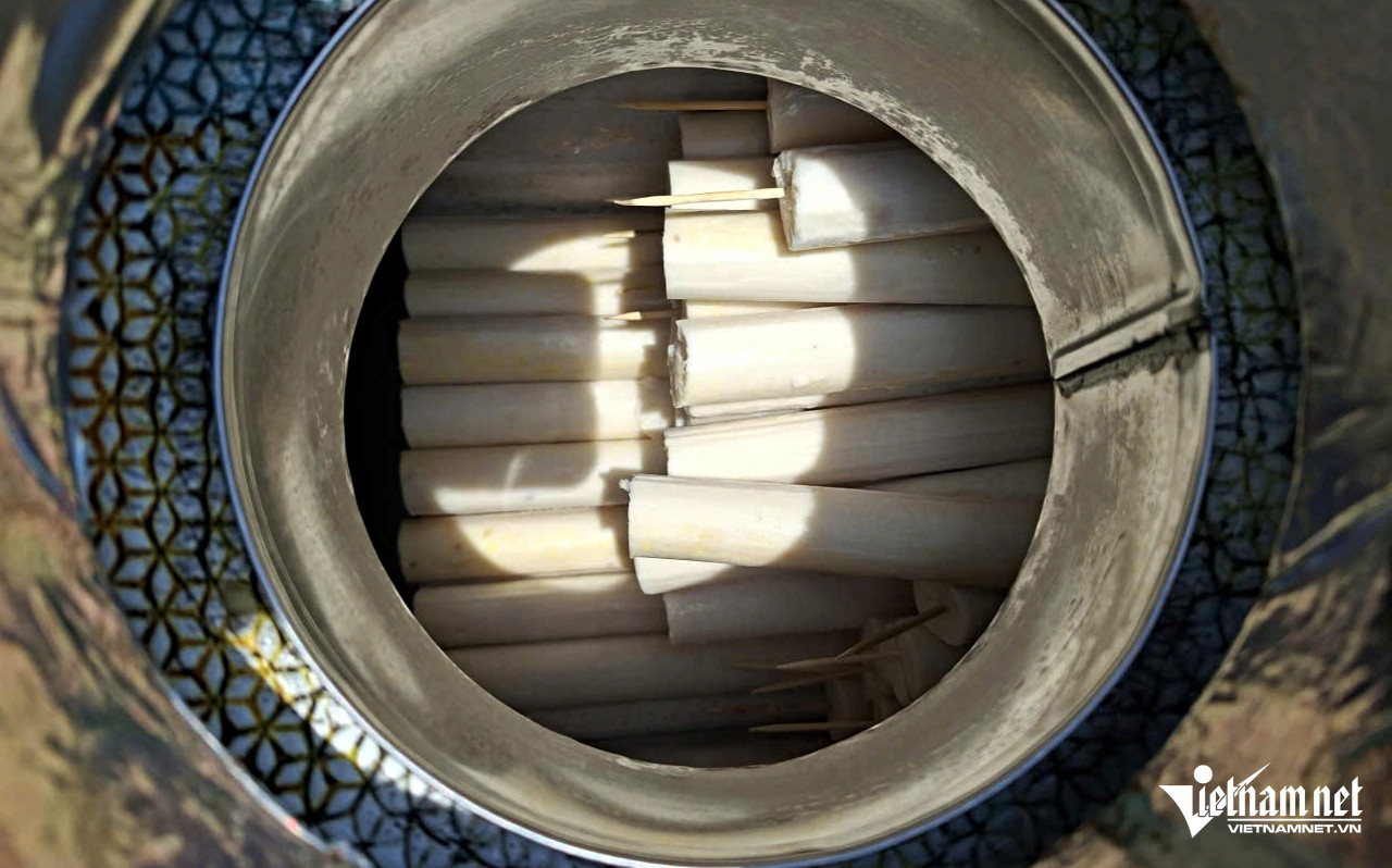 Mỗi khi có khách, tùy yêu cầu, ông sẽ cắt thành đoạn dài ngắn khác nhau. Ảnh: Hà Nguyễn