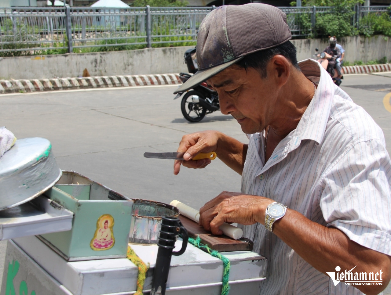 Mỗi ngày, ông Hiền đi bán kem vào giờ trưa, lúc trời nắng gắt. Ông nói rằng, công việc này phụ thuộc ông trời. Trời càng nắng nóng, ông bán càng đắt hàng.