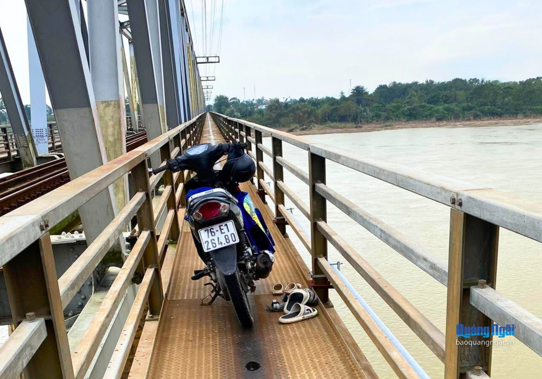 Theo thông tin ban đầu, vào khoảng 10 giờ sáng ngày 26/11, người dân phát hiện anh V.V.T (27 tuổi) trú tại thôn Điện An, xã Tư Nghĩa điều khiển xe máy chở theo 2 cháu nhỏ, là V.V.T (6 tuổi) và V.N.M.A (2 tuổi) lưu thông qua cầu đường sắt Trường Xuân, thuộc thôn Trường Xuân, xã Sơn Tịnh.