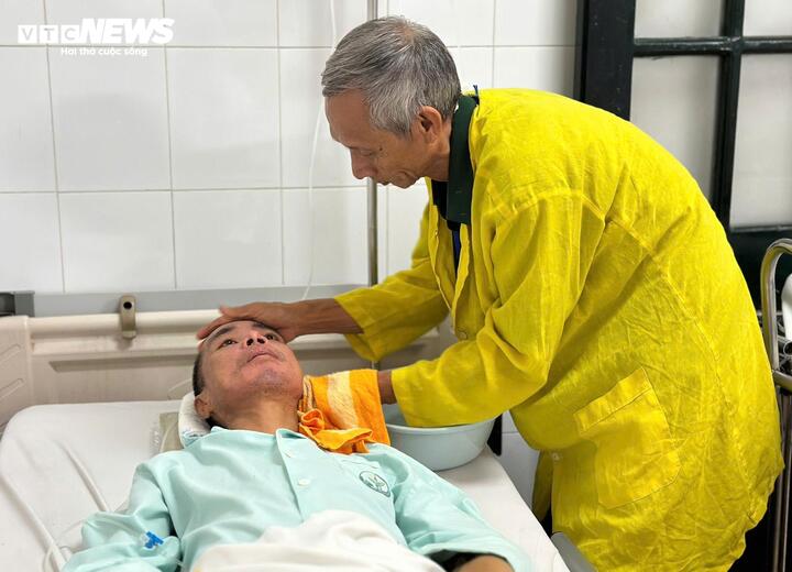 Ông Loan chăm sóc con trai đang điều trị tại Bệnh viện Việt Đức.