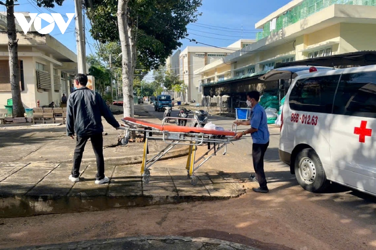 Xe cứu thương chờ đưa thi thể nạn nhân từ bệnh viện về gia đình lo hậu sự. Ảnh: B.H