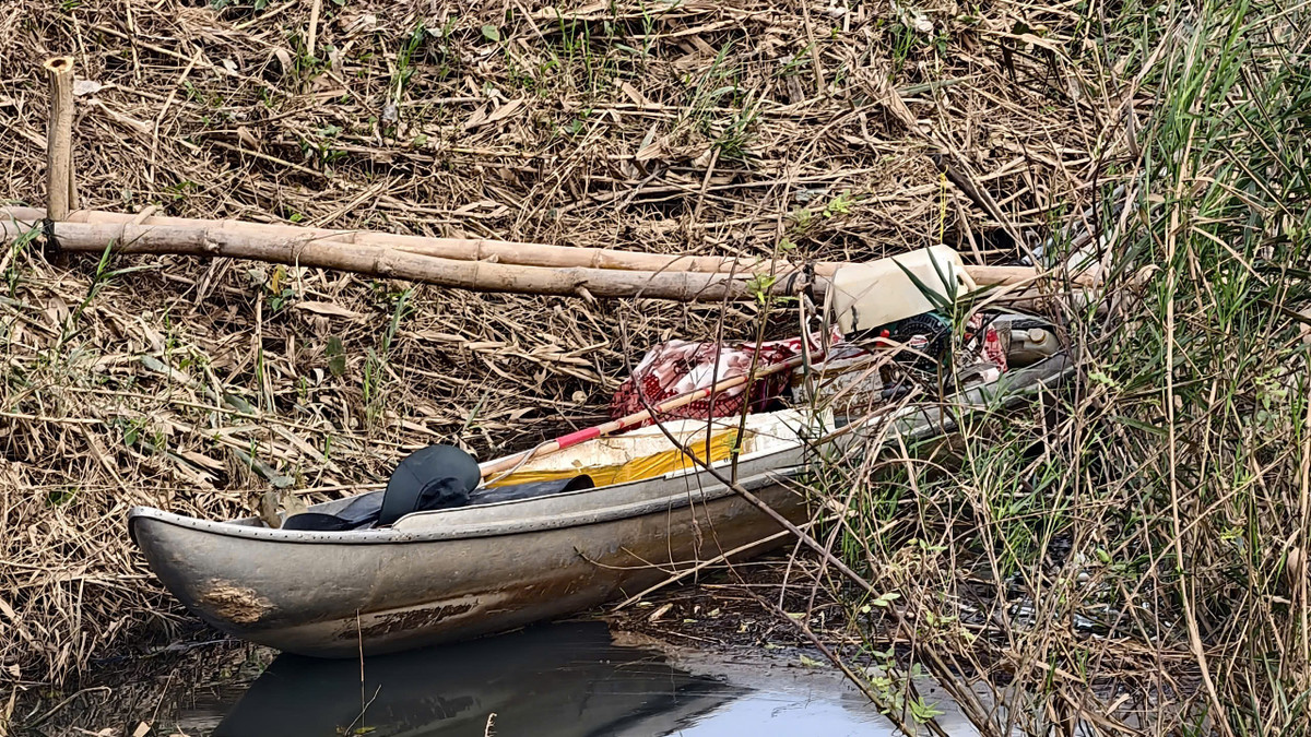 Tại hiện trường, ghe tấp sát lùm cây, trên ghe vẫn còn một số tài sản. Người dân cho hay, nạn nhân là người hành nghề sông nước tại khu vực.