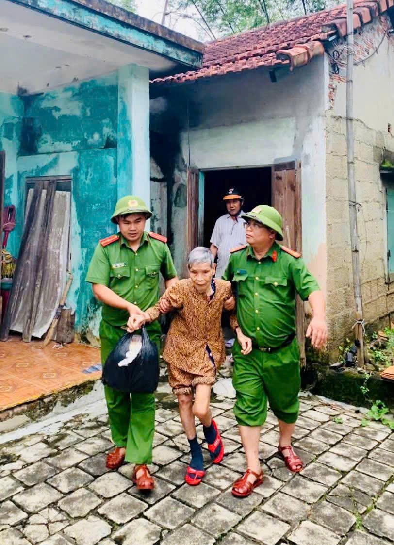 Công an TP Đà Nẵng hỗ trợ người dân di dời tránh trú bão số 12.