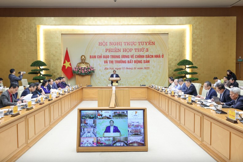 Thủ tướng Phạm Minh Chính, Trưởng Ban Chỉ đạo Trung ương về chính sách nhà ở và thị trường bất động sản, chủ trì phiên họp thứ 3 của Ban Chỉ đạo - Ảnh: VGP.