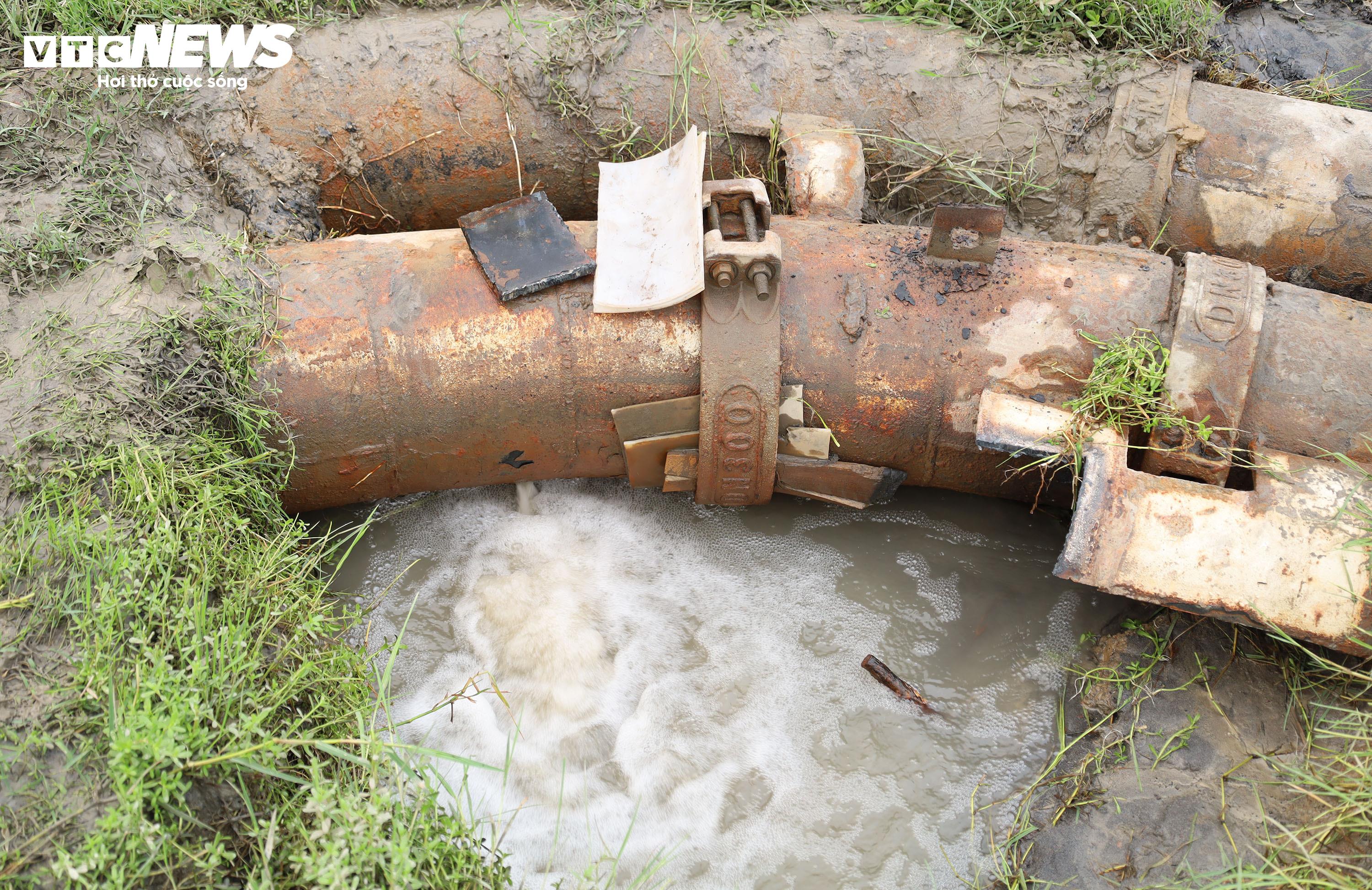 Tại một điểm đang được khắc phục, một công nhân cho biết, đoạn ông bị bục được khoảng 3 ngày, nhóm thợ phải gia cố để nước thải không xả ra bên ngoài.