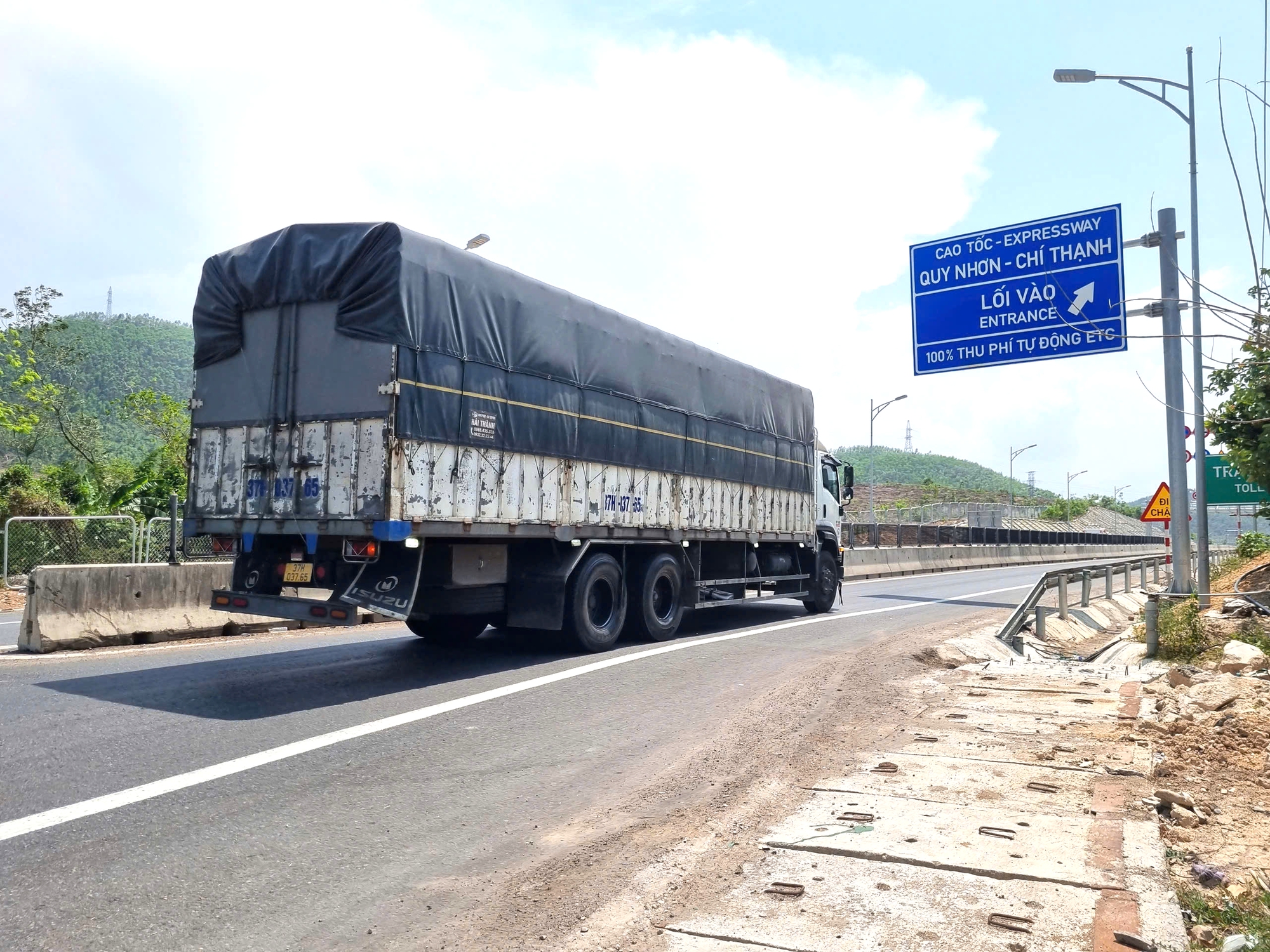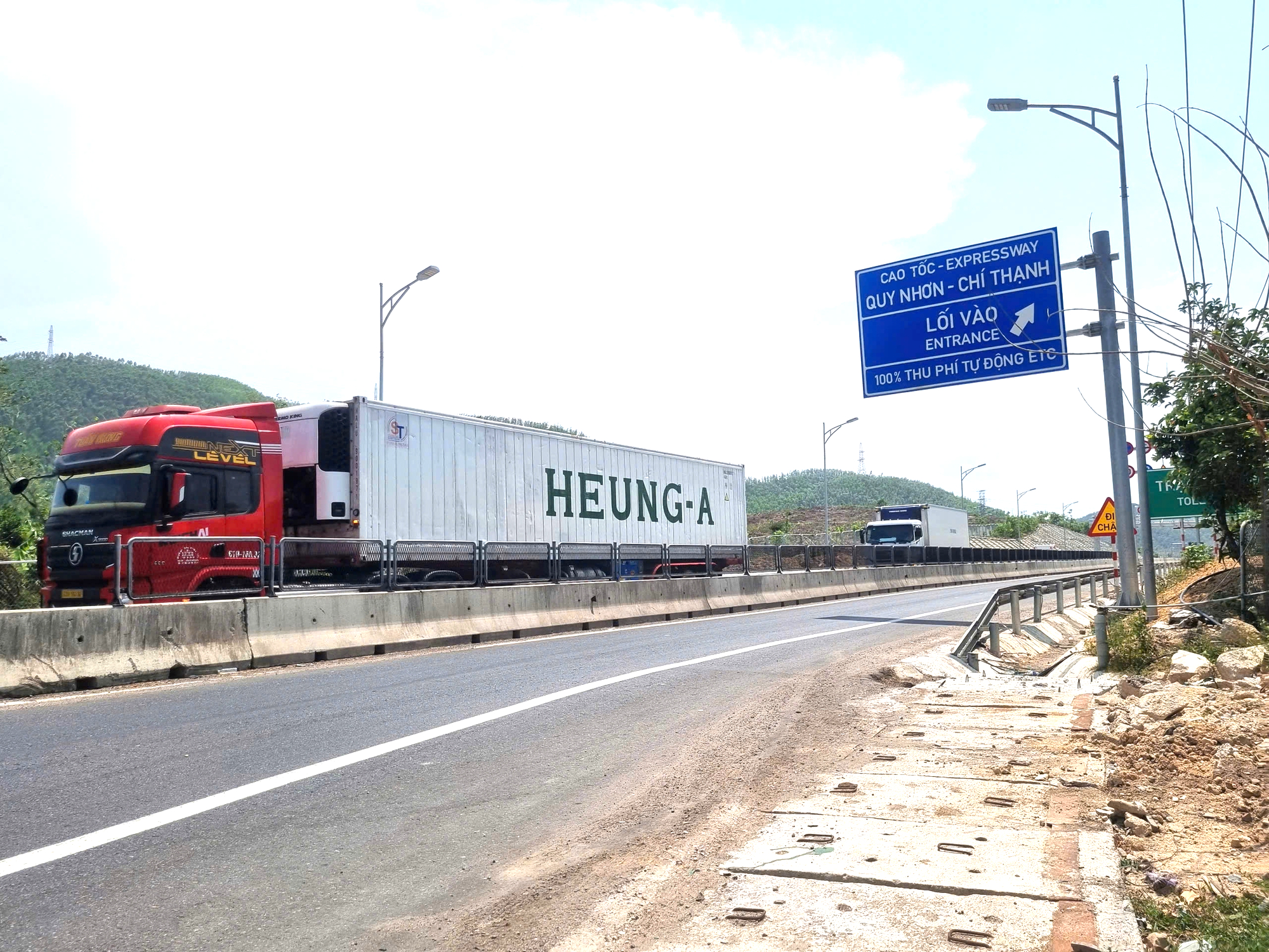 Hơn 11h30, khi những khối bê tông chắn lối được lực lượng chức năng di chuyển khỏi lòng đường dẫn, là lúc các phương tiện nối đuôi nhau ra vào, báo hiệu thời khắc chính thức khai thác tuyến cao tốc Hoài Nhơn - Quy Nhơn.