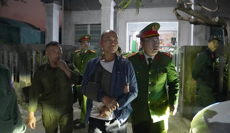 Cơ quan Cảnh sát điều tra Công an tỉnh Thanh Hóa thi hành Lệnh bắt Lê Minh Vũ.