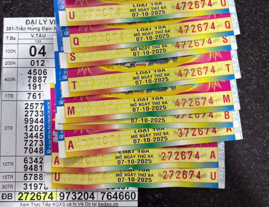 Theo đó, ngày 7-10, Công ty Xổ số kiến thiết Bà Rịa-Vũng Tàu phát hành vé số ký hiệu 10A và dãy số trúng giải đặc biệt (2 tỉ đồng/vé) là dãy số 272674.