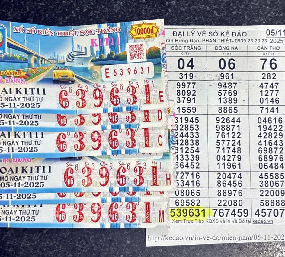 18h ngày 5-11, anh TVH, điều hành đại lý vé số Kế Đáo trên đường Trần Hưng Đạo, phường Phan Thiết, tỉnh Lâm Đồng, xác nhận vé số của Công ty Xổ số kiến thiết Sóc Trăng ký hiệu K1T11 mở ngày thứ tư 5-11, đã cho kết quả người dân Phan Thiết trúng 14 tờ đặc biệt.