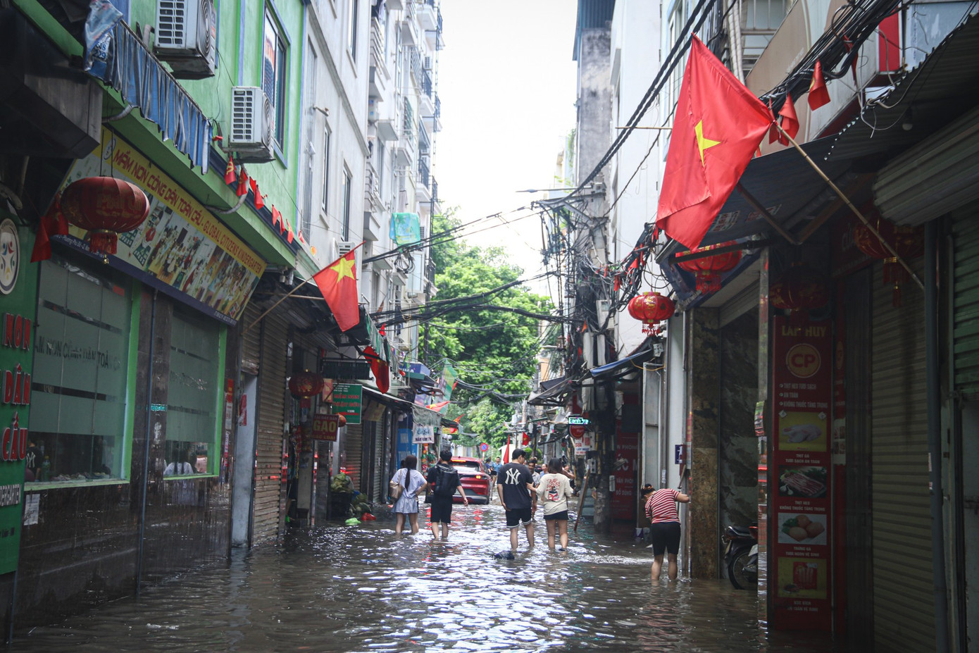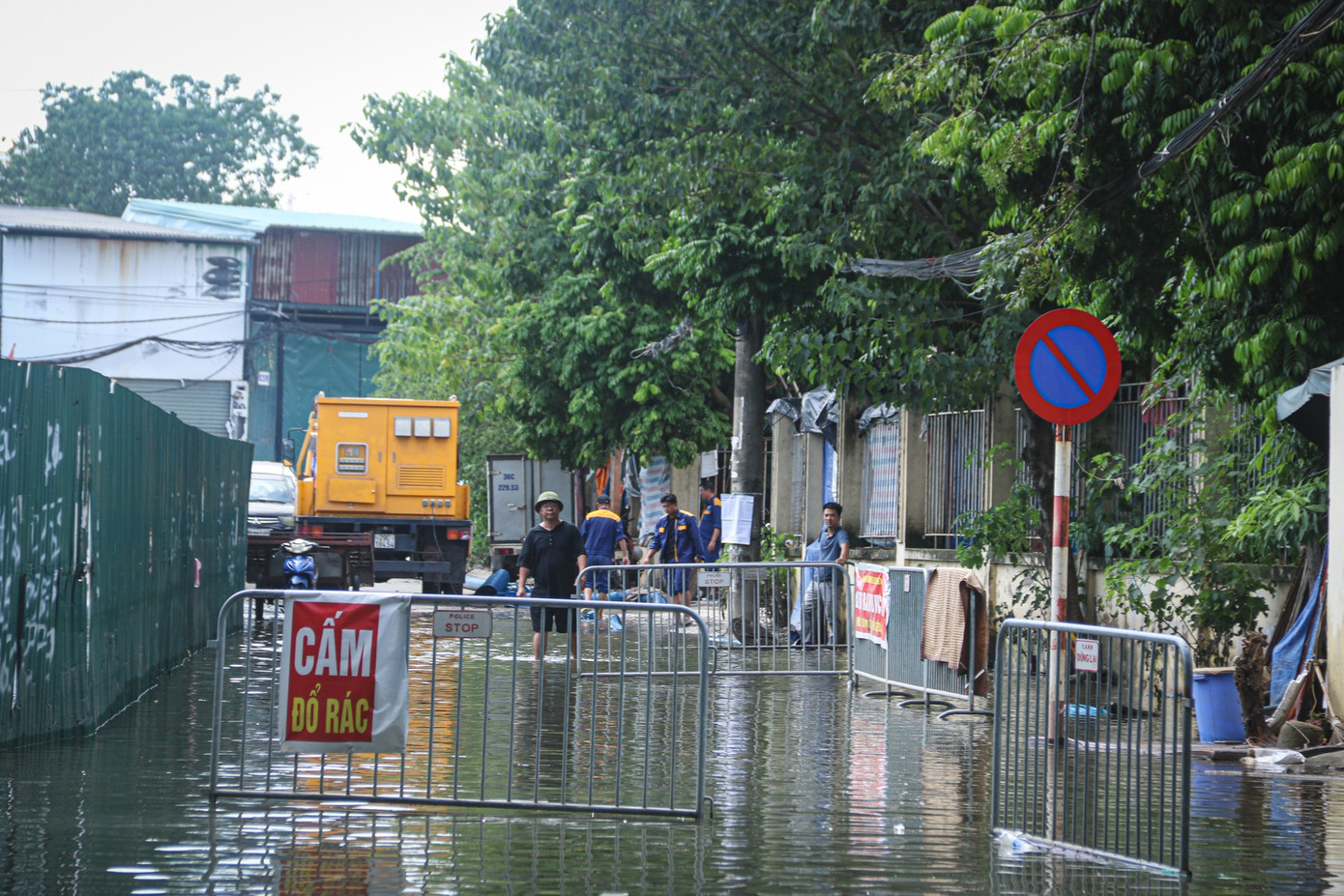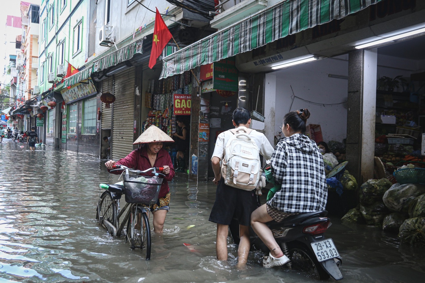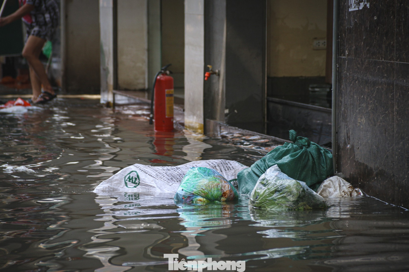 Từ chiều ngày 30/9 đến nay, khu vực tổ dân phố số 2 Phú Đô (gần chợ Phú Đô), phường Từ Liêm, Hà Nội vẫn ngập sâu sau mưa lớn. Nước dâng cao nhưng sau 2 ngày vẫn ngập khoảng 30 - 40 cm, kéo theo rác thải trôi nổi, mùi hôi thối khó chịu vào nhà, khiến cuộc sống của người dân đảo lộn.