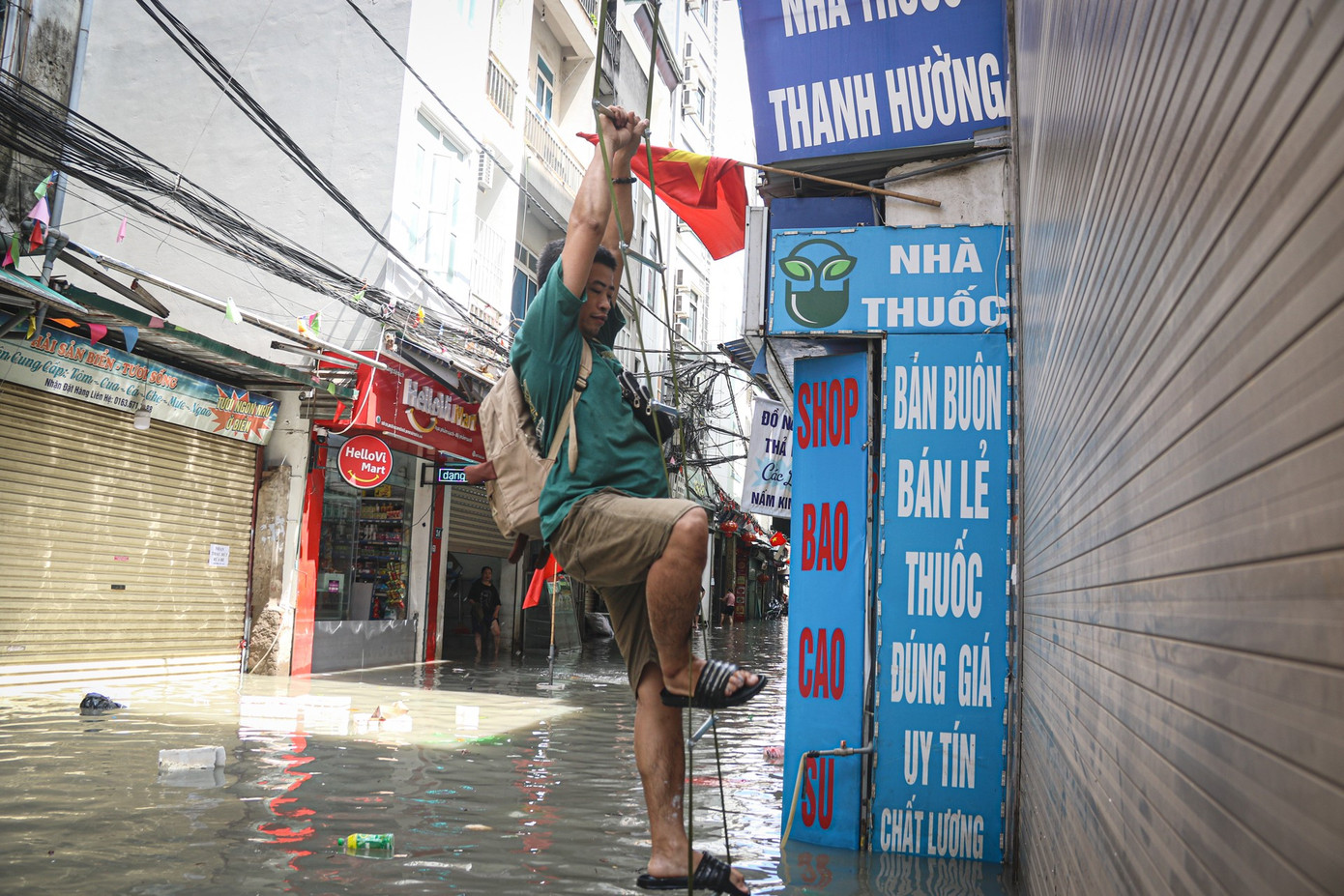 Nhiều hộ gia đình rơi vào cảnh cô lập, mất điện và không có nước sạch. Anh Mạnh Việt (tổ dân phố số 2 Phú Đô) cho biết, 2 ngày qua những người sinh sống trong nhà bị cô lập do cửa cuốn hỏng vì ngập nước. Đến hôm nay, mọi người phải dùng thang thoát hiểm, leo ba tầng từ ban công tầng 3 để nhận đồ tiếp tế hoặc để thoát ra ngoài.