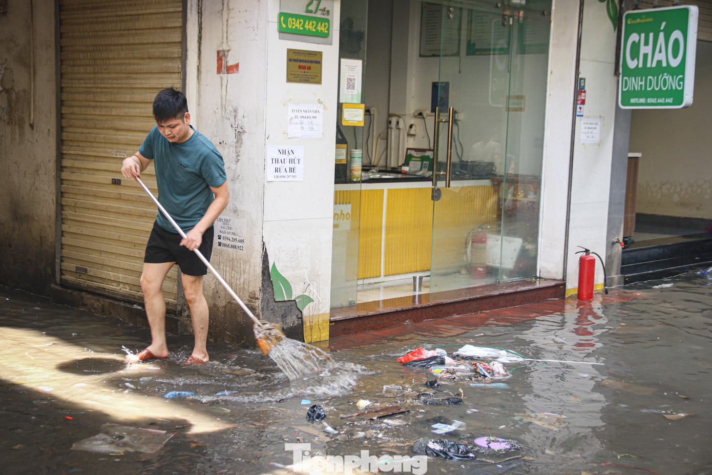 Đến sáng 2/10, khi mưa đã tạnh, nước bắt đầu rút chậm khỏi nhiều ngõ nhỏ. Tuy nhiên, lớp bùn nhão, rác thải mắc kẹt dọc hai bên đường, mùi hôi bốc lên nồng nặc khiến việc đi lại và dọn dẹp thêm phần vất vả. Người dân tranh thủ kê đồ ra phơi, cào bùn, dọn dẹp từng chút một để sớm trở lại nhịp sống thường ngày.