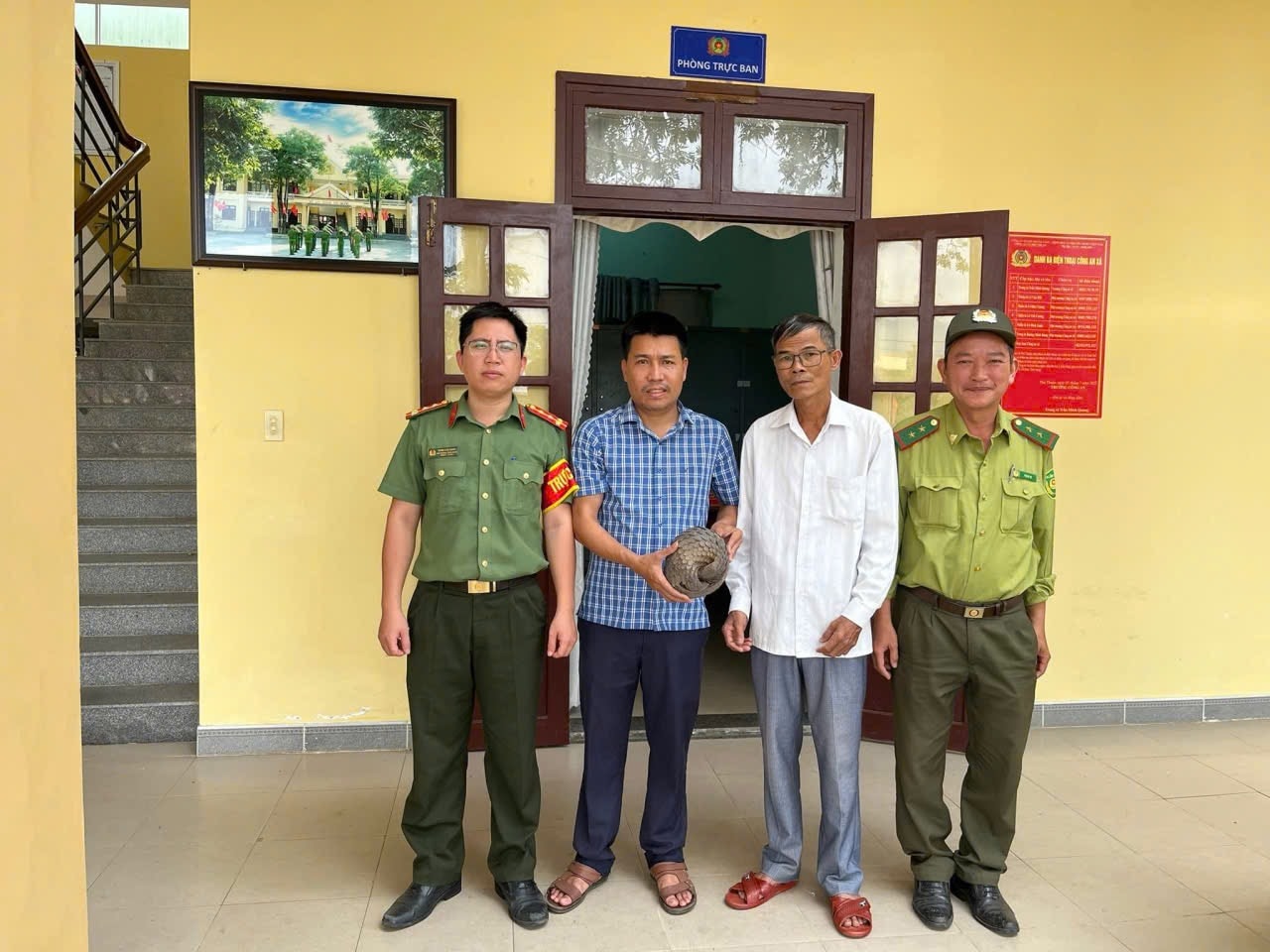 Trước đó, tại khu vực phía sau nhà, ông Trịnh Vi (sinh năm 1973, trú thôn An Chánh, xã Phú Thuận) phát hiện một cá thể tê tê. Nhận thấy đây là động vật hoang dã cần được bảo vệ, ông nhanh chóng trình báo và bàn giao cho Công an xã Phú Thuận.