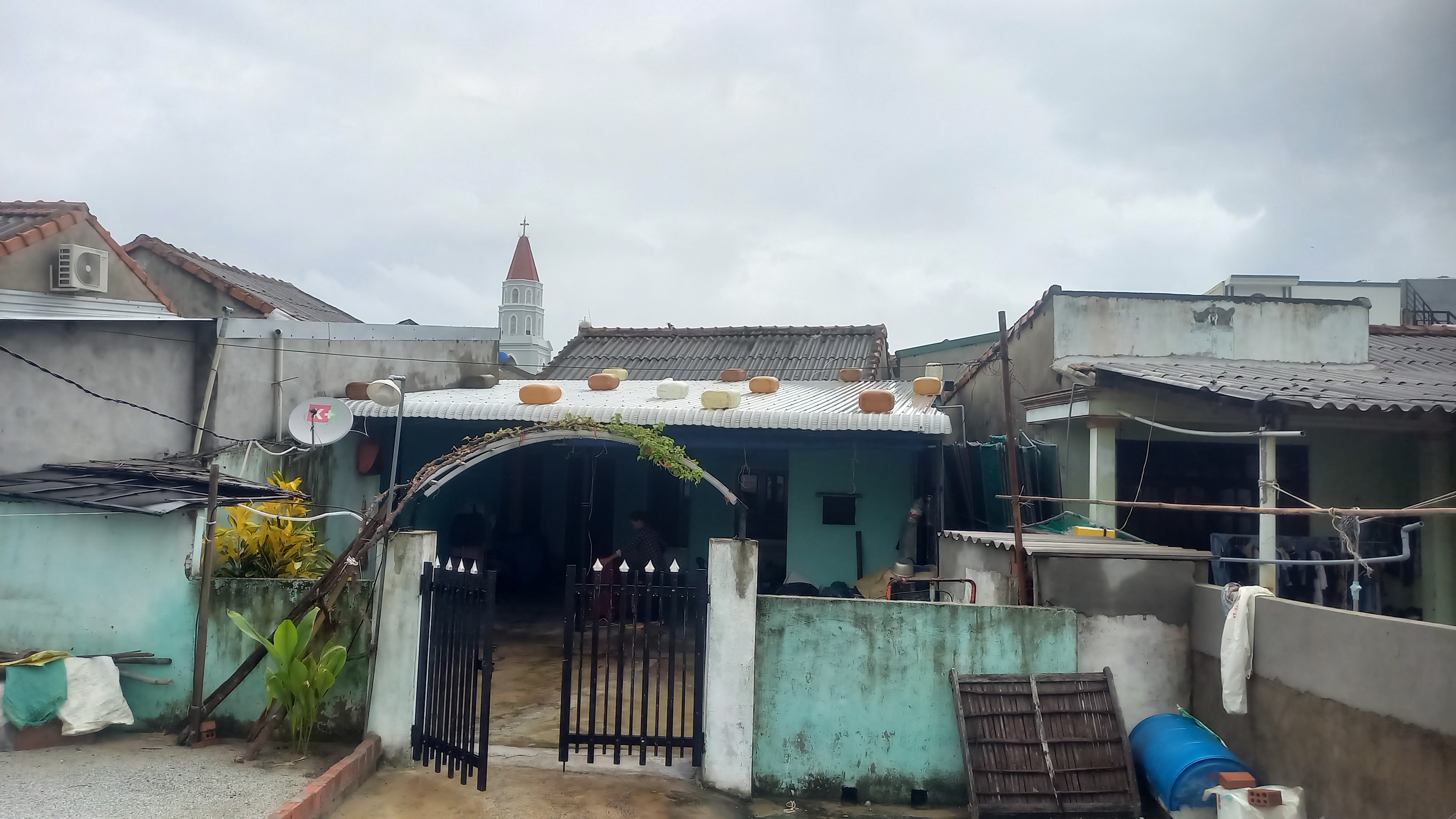 Ông Nguyễn Duy Khanh (thôn Thanh Thủy, xã Vạn Tường) cũng đang chằng chống nhà cửa, cho biết: “Nghe bão thì người dân ở biển rất lo lắng, nhà sát biển nên phải lo dây cột, đá, sắt... để giữ cái nhà”.