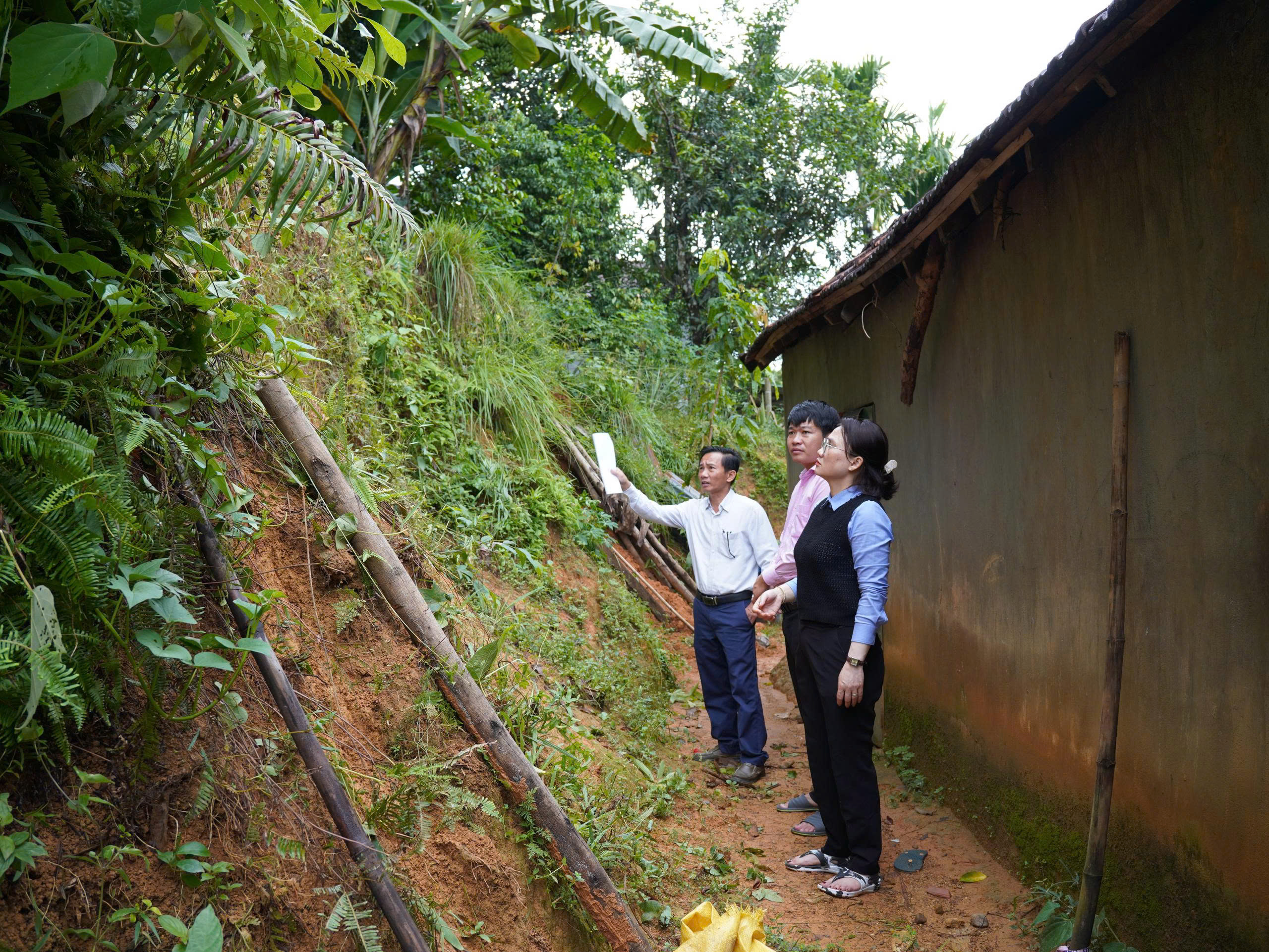 Đoàn kiểm tra thực tế tại các điểm có nguy cơ sạt lở. Ảnh: VÕ THẠCH