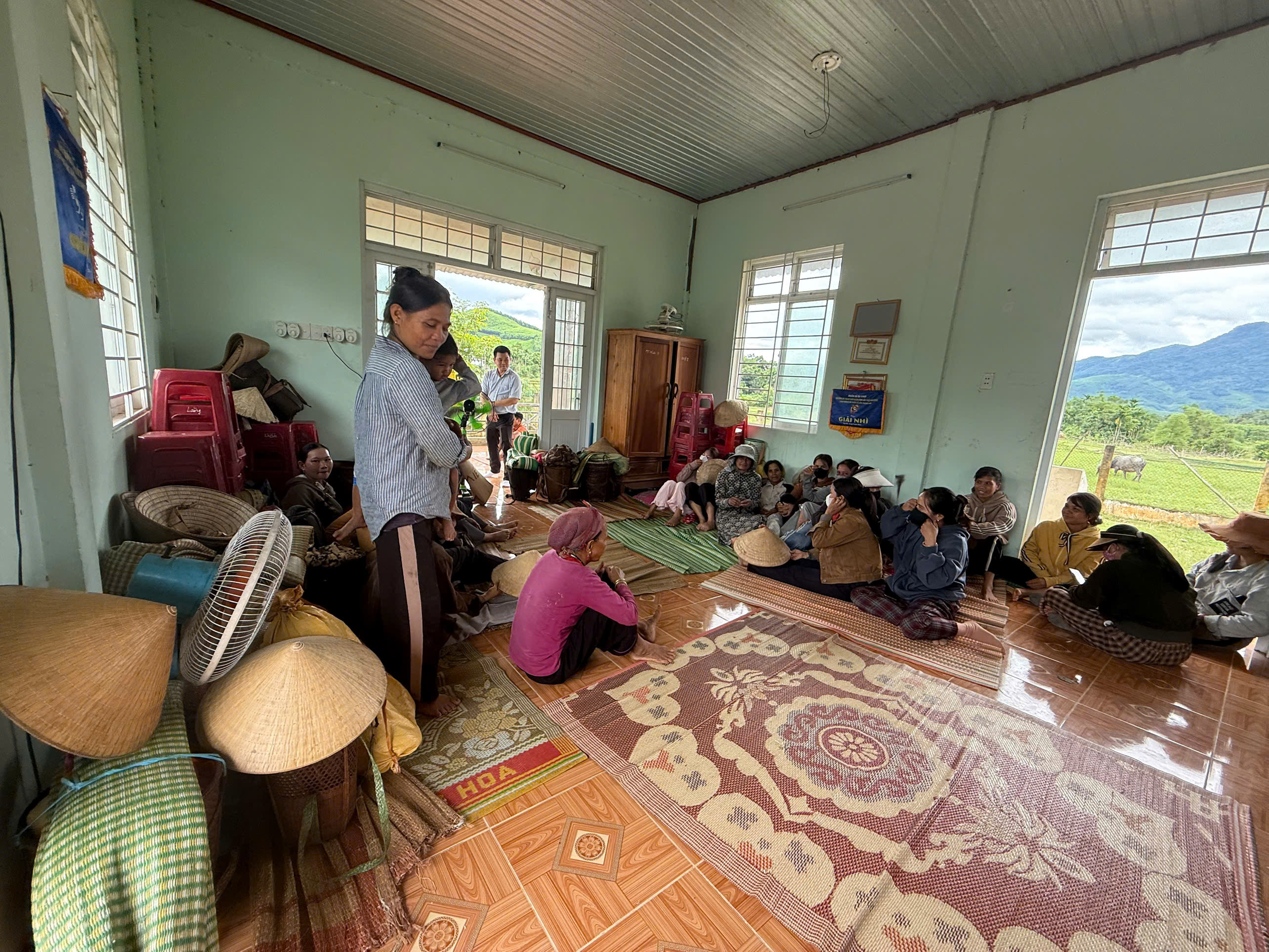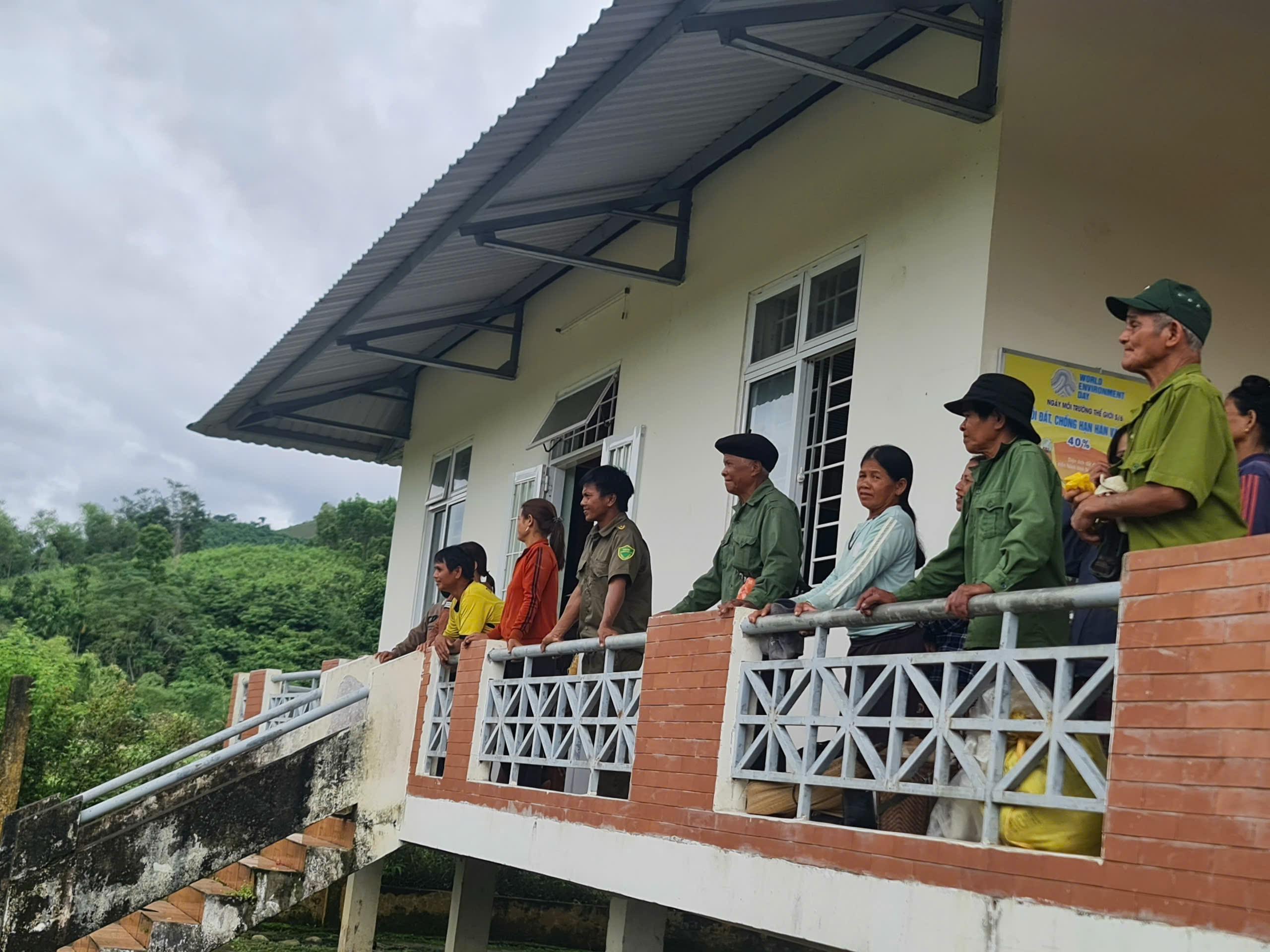 Người dân nhẹ nhõm hơn di dời đến nhà văn hóa thôn Ba Lang, xã Ba Vinh. Ảnh: NGUYỄN TRANG