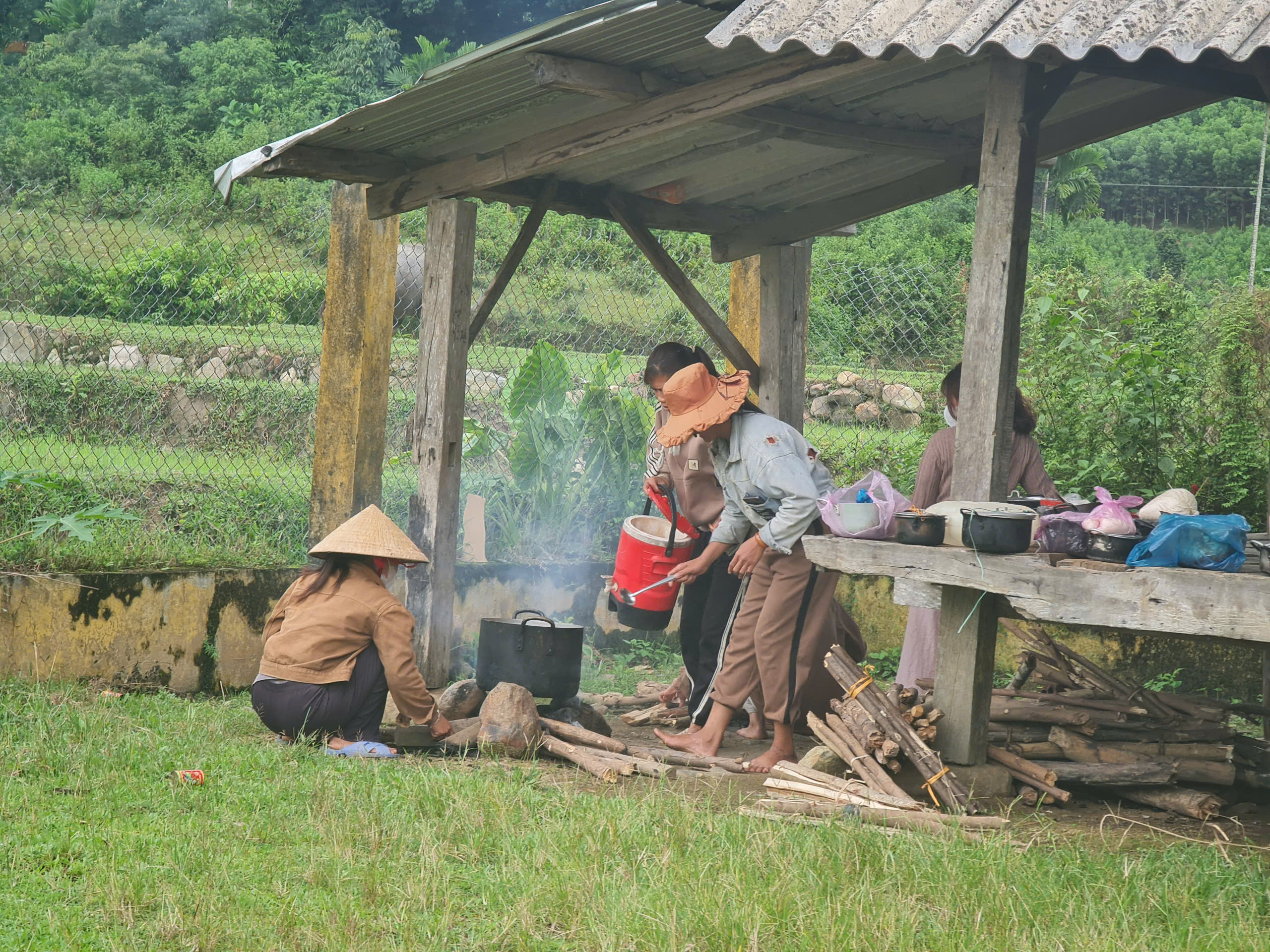 Ông Phan Quang Đức, Chủ tịch UBND xã Ba Vinh, cho biết: “Chính quyền xã đã chủ động hỗ trợ người dân di dời tránh trú bão số 12, chuẩn bị đầy đủ nước uống, lương thực để cùng nhau nấu nướng. Ở nhà văn hóa thôn, chính quyền bố trí bếp để mọi người có thể tự nấu ăn, sinh hoạt tạm ổn trong những ngày mưa gió”.