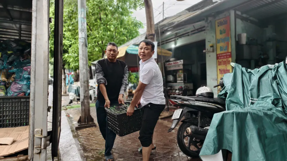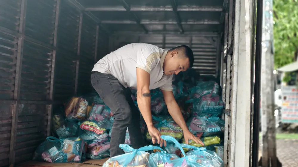 Tất bật chuyển bánh chưng, bánh tét lên xe để vào vùng lũ.