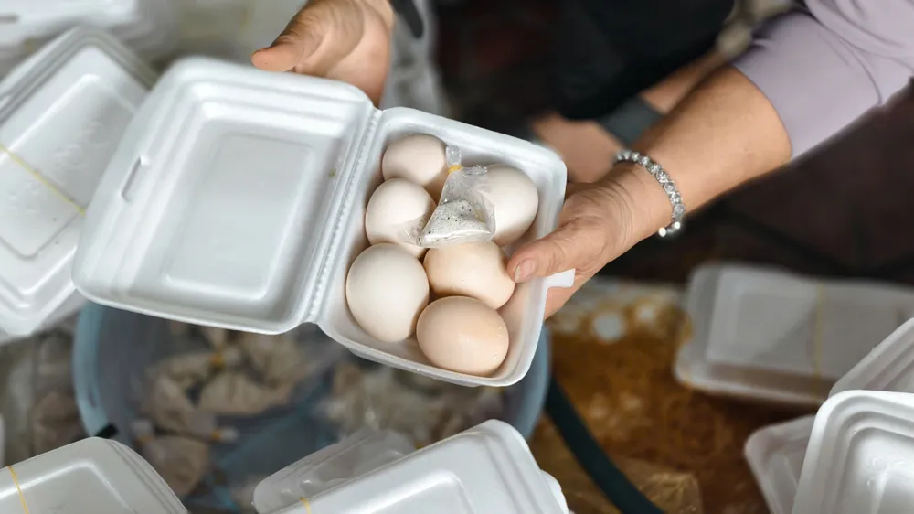 Các phần trứng luộc, bánh nấu chín được chuẩn bị chu đáo.