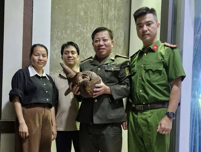 Lực lượng chức năng tiếp nhận cá thể tê tê quý hiếm.