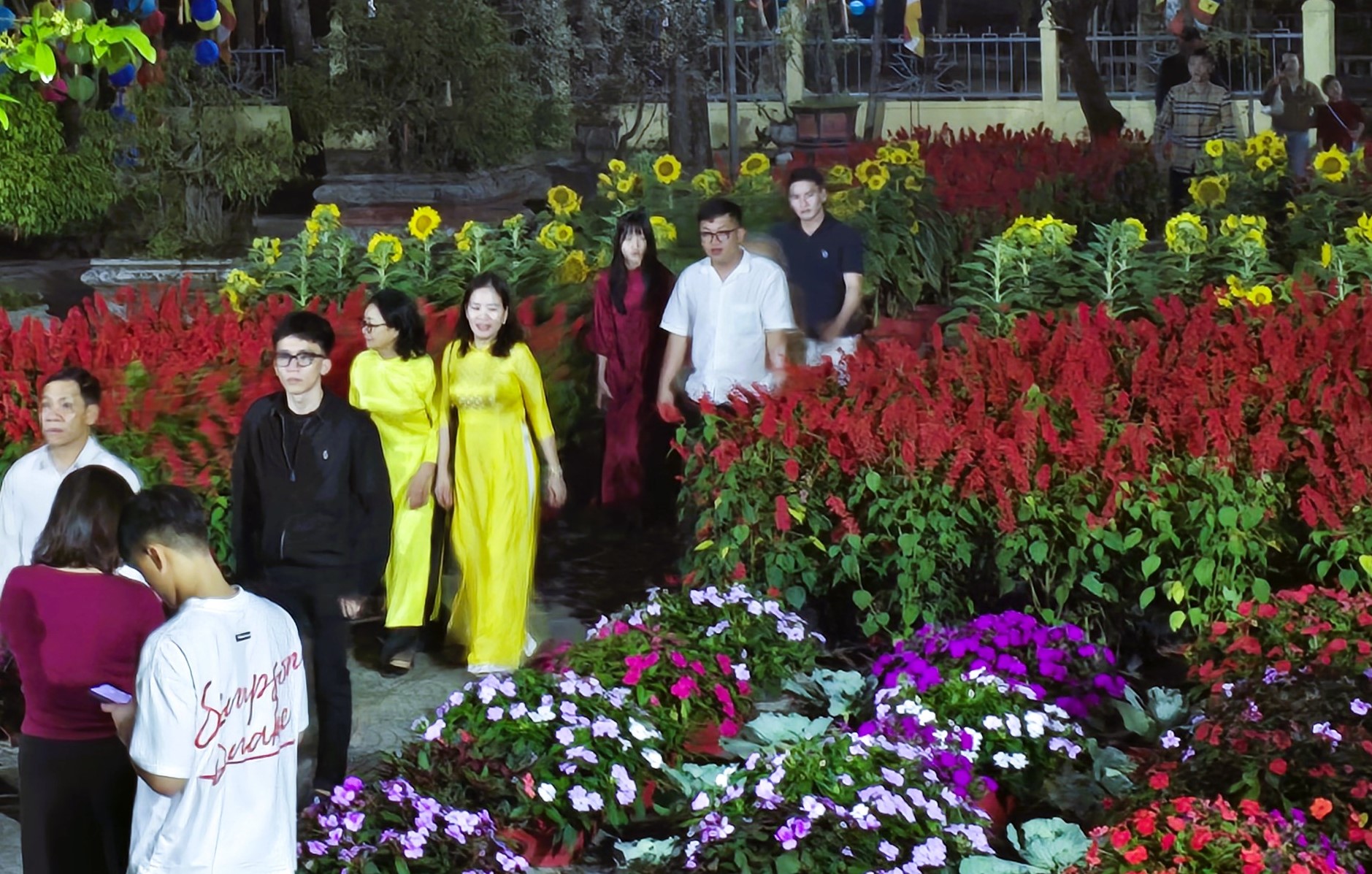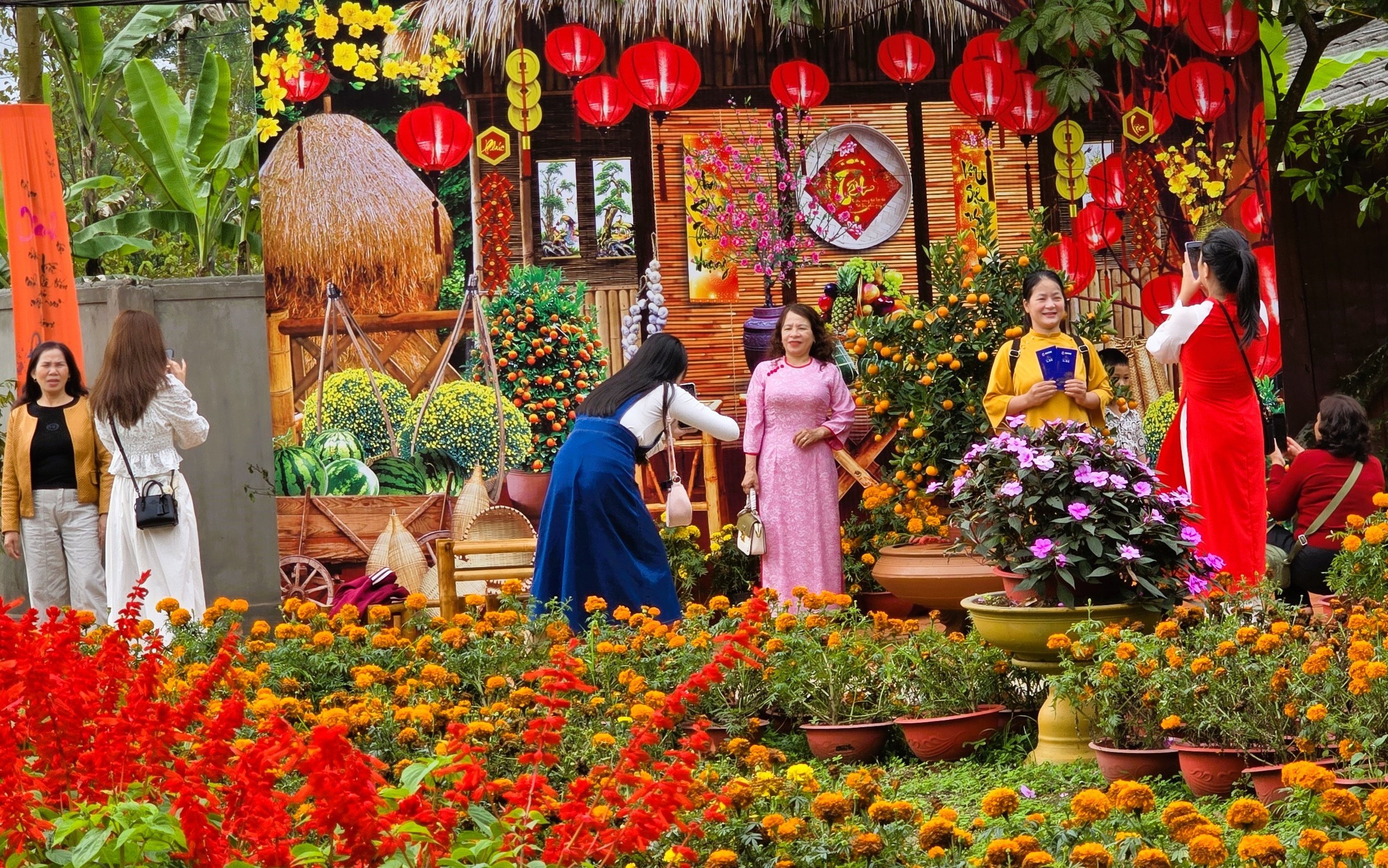 Không gian đầu năm mới rực rỡ sắc hoa xuân, nhiều tiểu cảnh Tết được bố trí phục vụ người dân, phật tử “check in” vào dịp Tết.