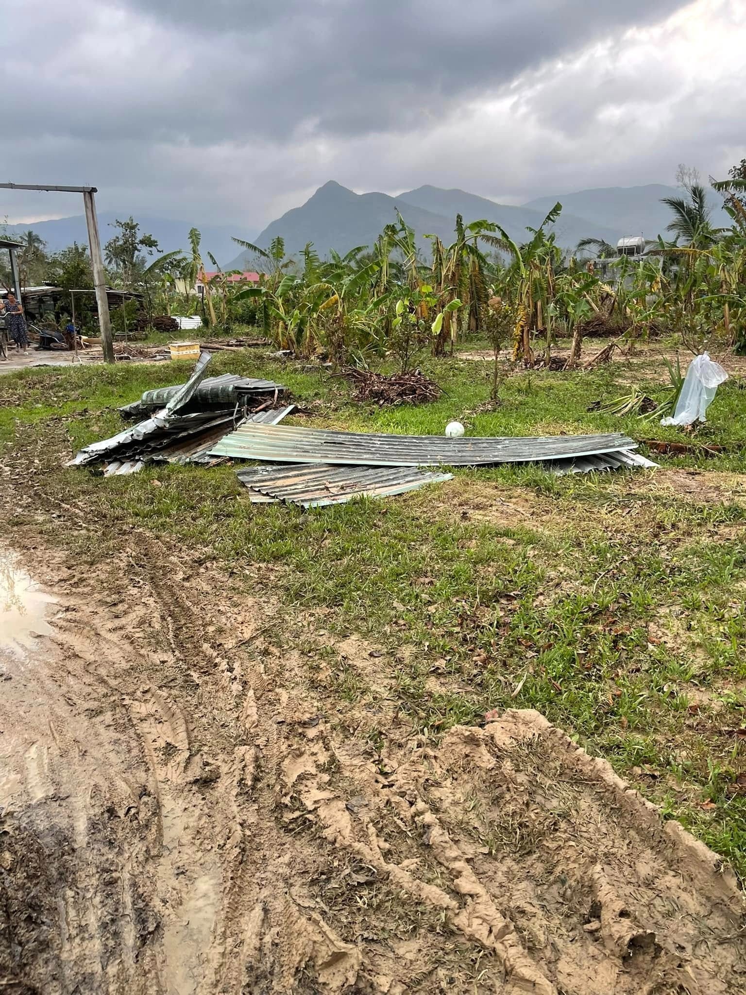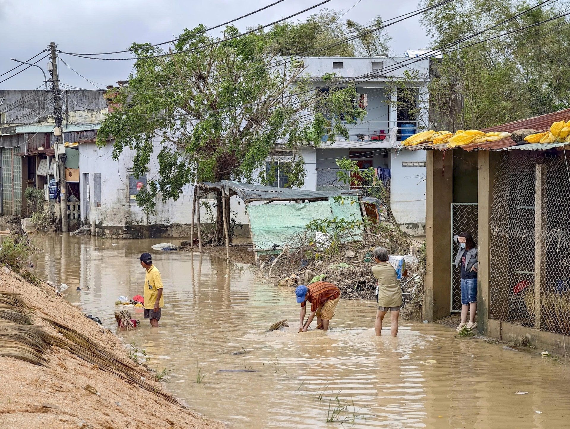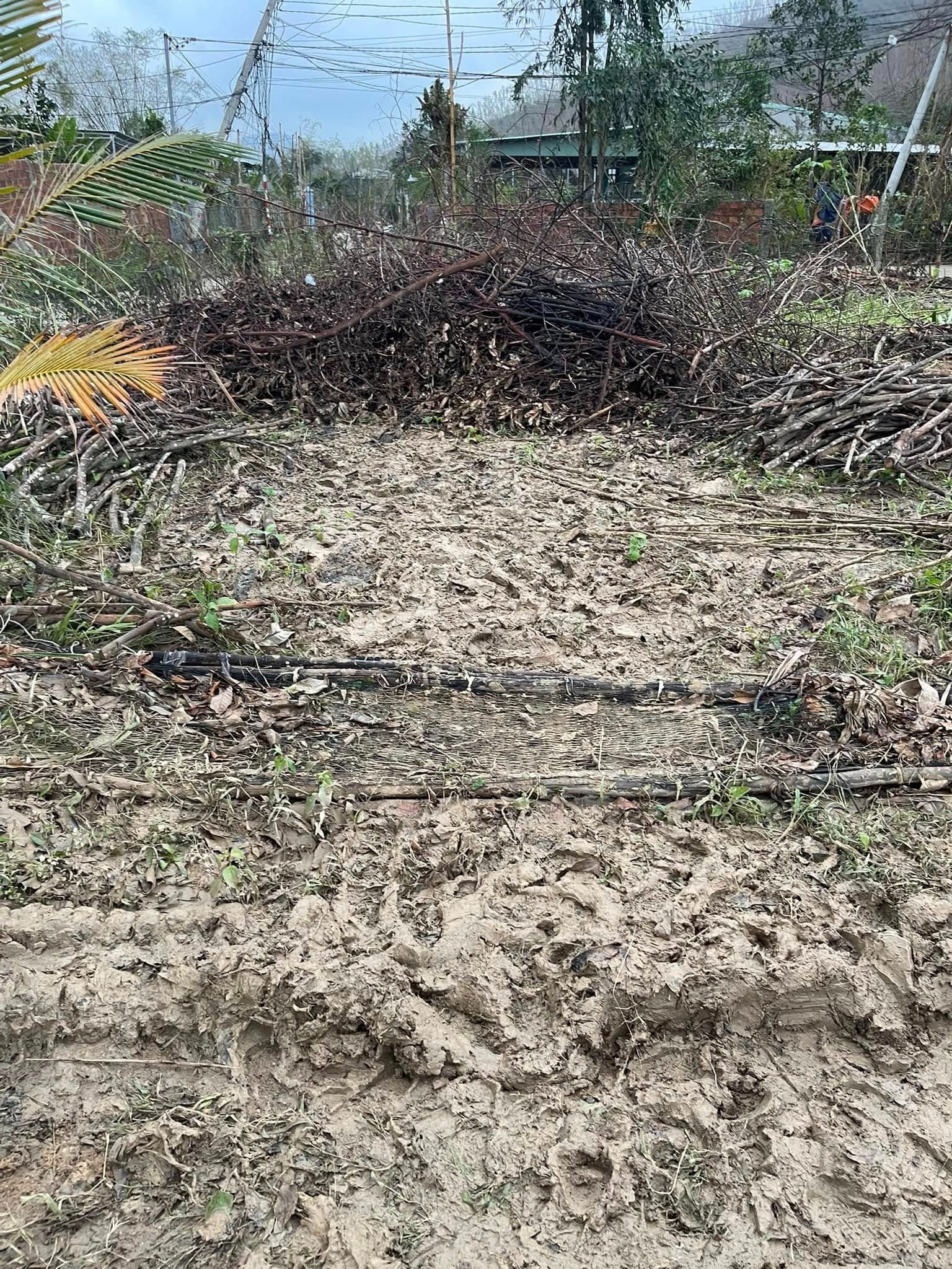 Mảnh vườn và lối vào nhà của một hộ dân ở Quy Nhơn bị lũ tàn phá. Võ Duyên, thành viên gia đình, cho biết cả nhà đã mất cả ngày để dọn dẹp nhà cửa. "Nhưng mọi thứ vẫn còn tan hoang lắm. Một cơn bão, một cơn lũ để lại thiệt hại quá lớn", Duyên bần thần nói với Tri Thức - Znews. Ảnh: Mai Mang.