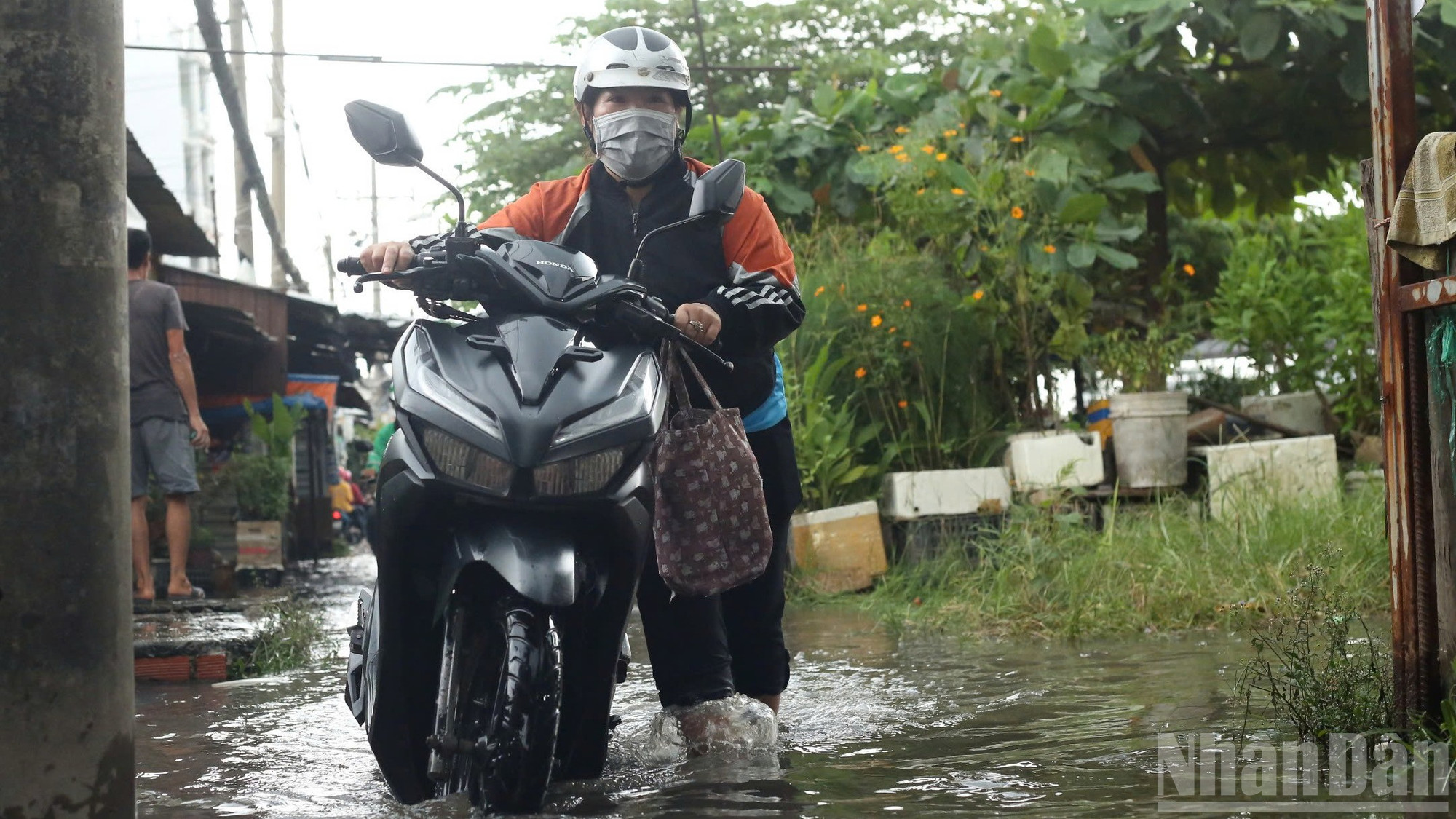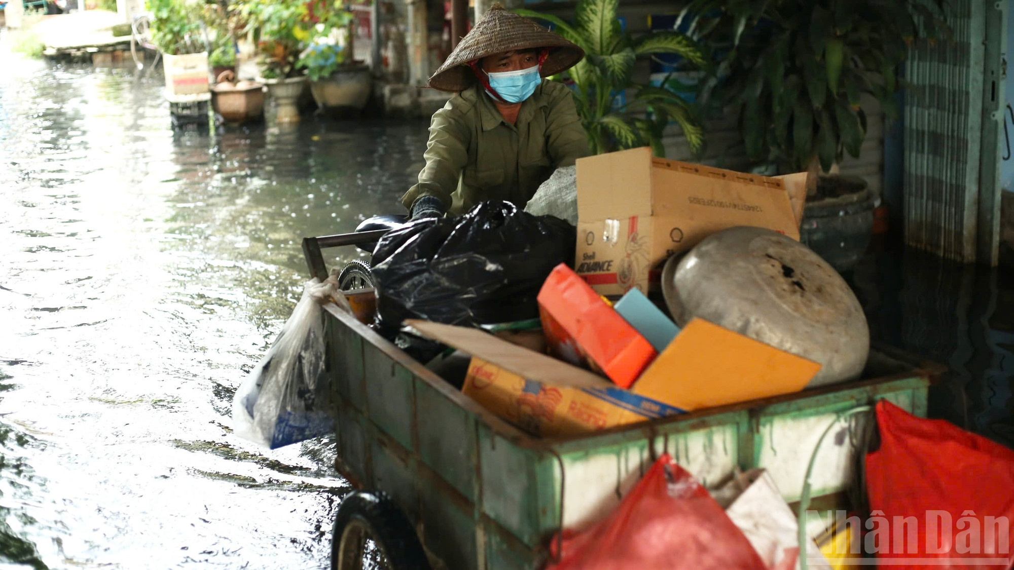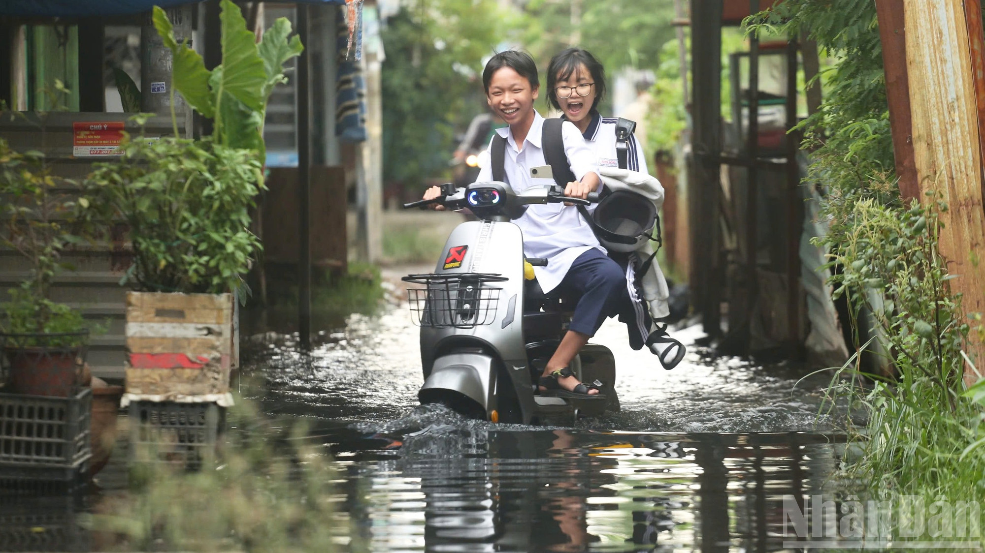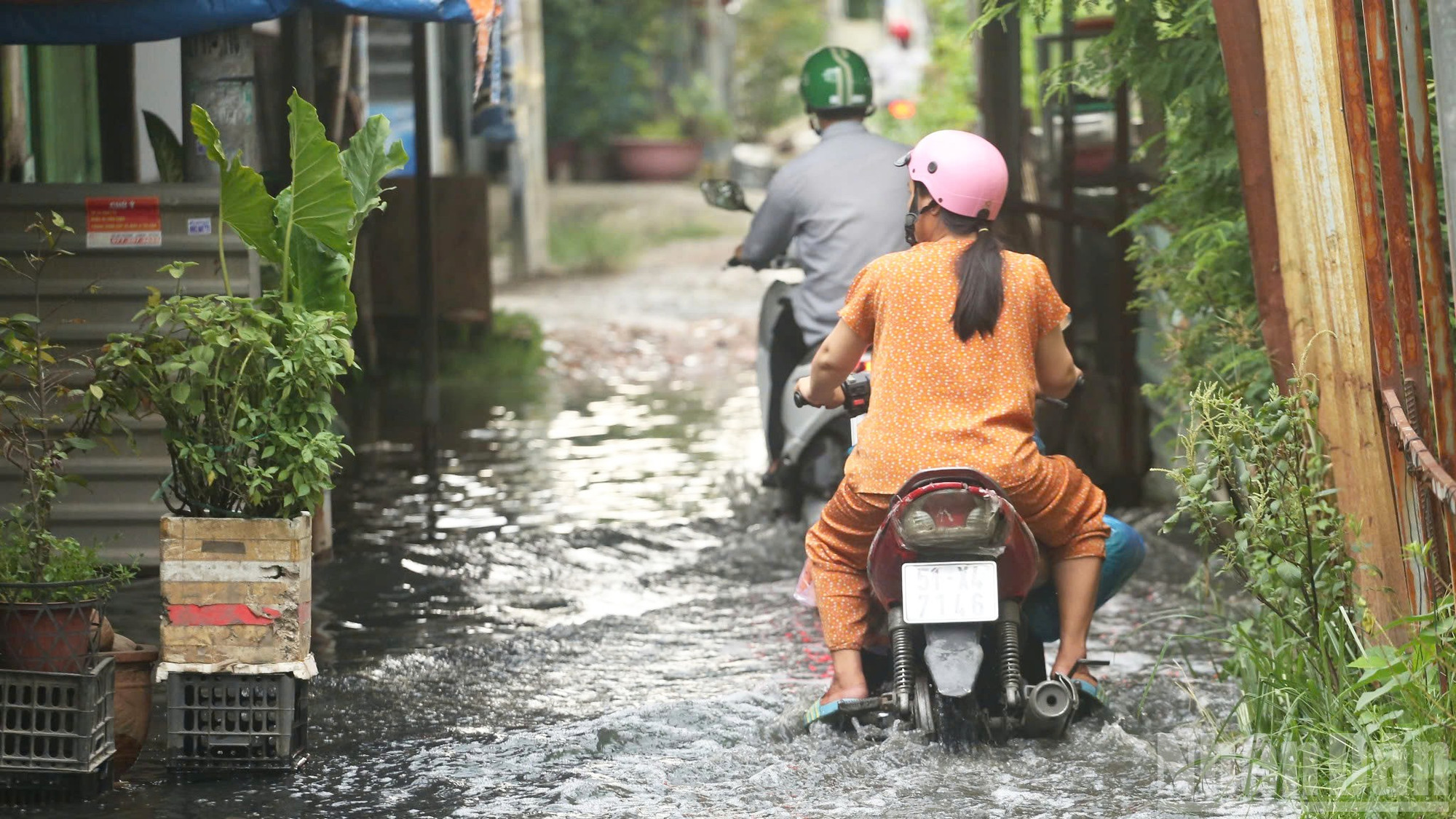 Theo ghi nhận của phóng viên vào những ngày này, dự báo triều cường dâng cao sẽ khiến con đường nhỏ ven kênh Đôi bị ngập nặng, biến thành một dòng sông nước đục ngầu. Nước tràn lênh láng vào nhà dân, mực nước dâng cao hơn 0,4m, ngập quá nửa bánh xe máy..