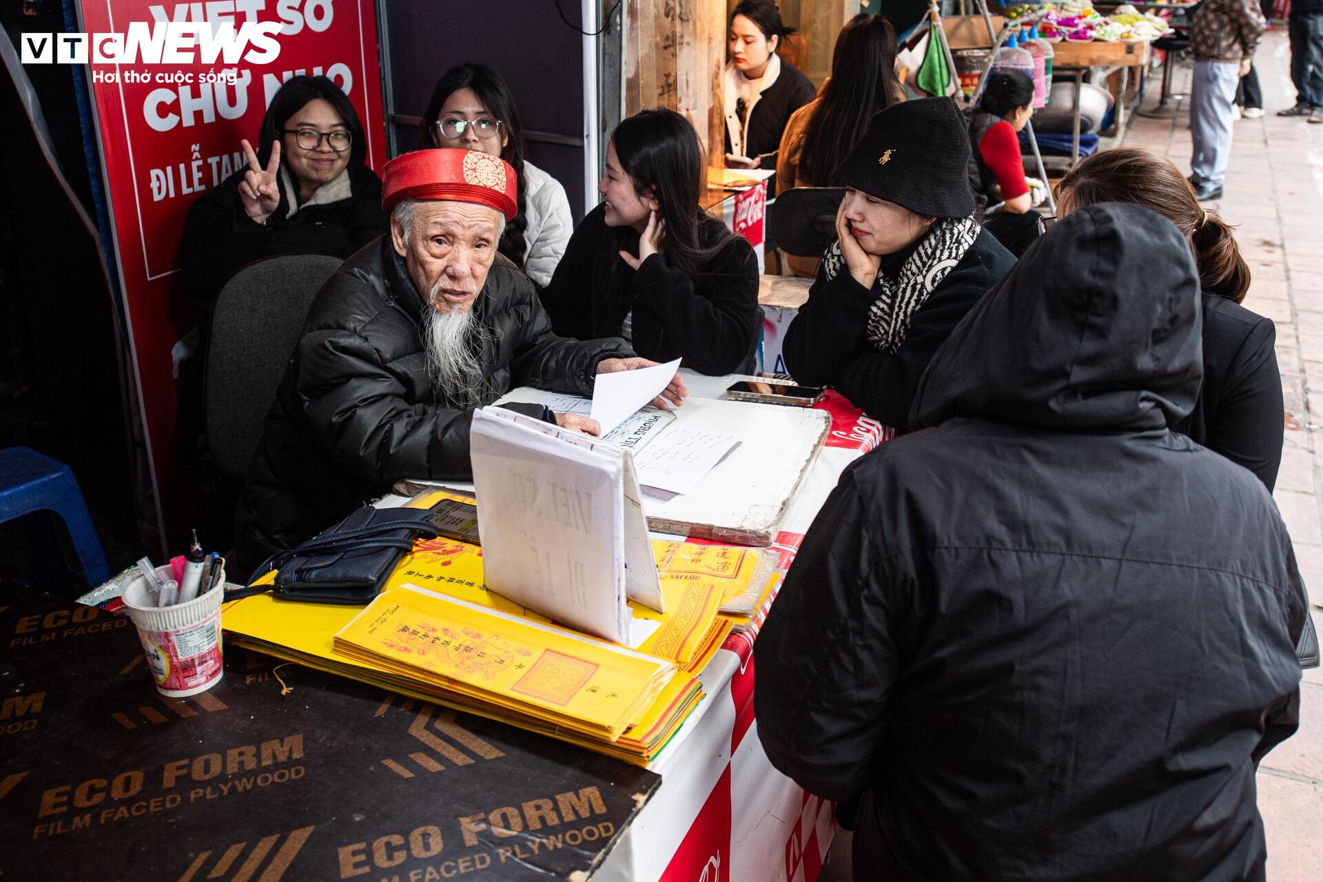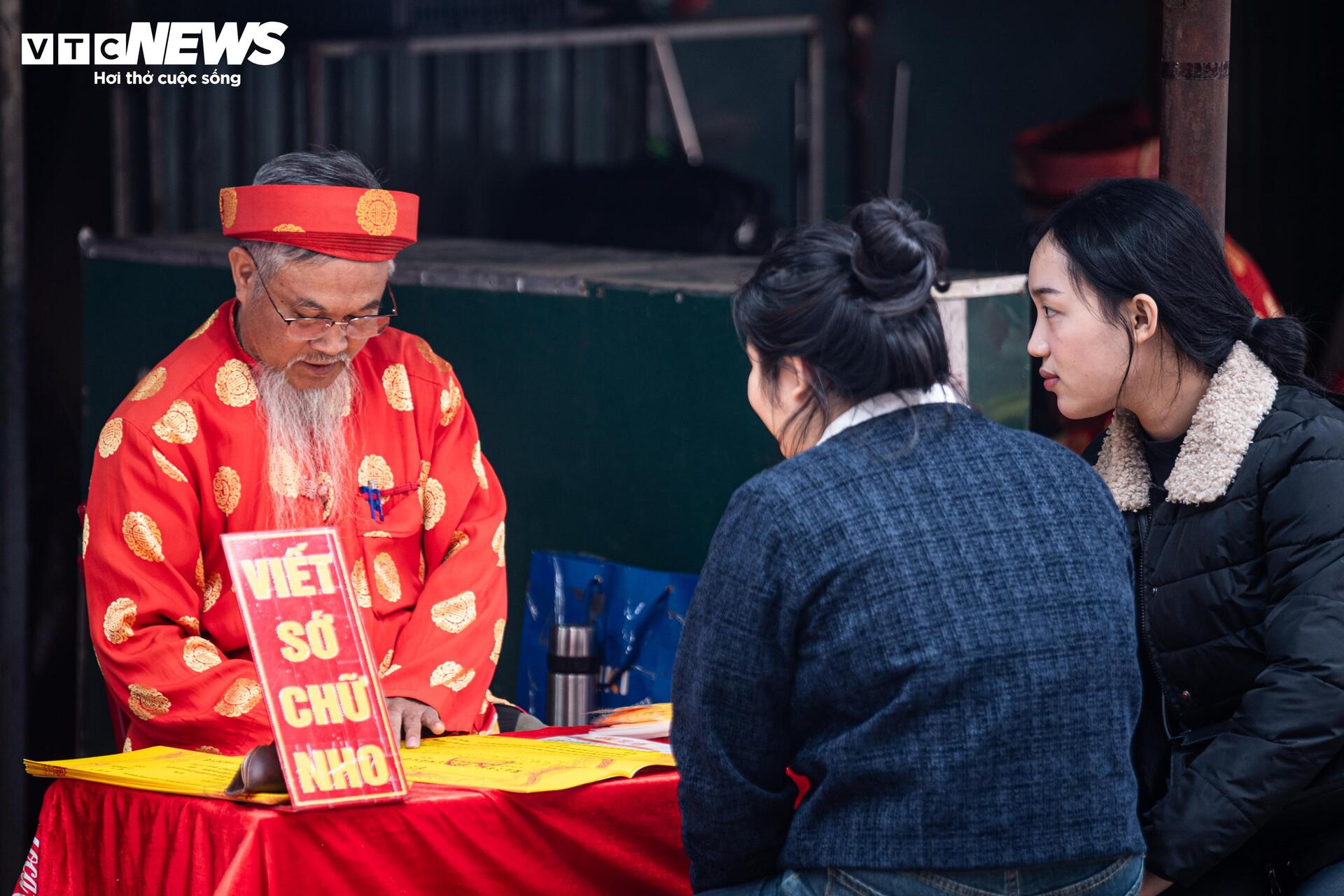 Bên cạnh các mâm lễ tạ thì dịch vụ viết sớ cũng luôn trong tình trạng kín khách. Với mức giá trung bình từ 60.000 - 100.000 đồng/lá sớ tùy loại, dịch vụ này mang lại nguồn thu không nhỏ cho các ông đồ trong dịp cao điểm.
