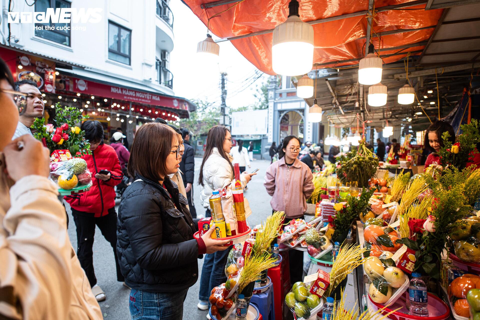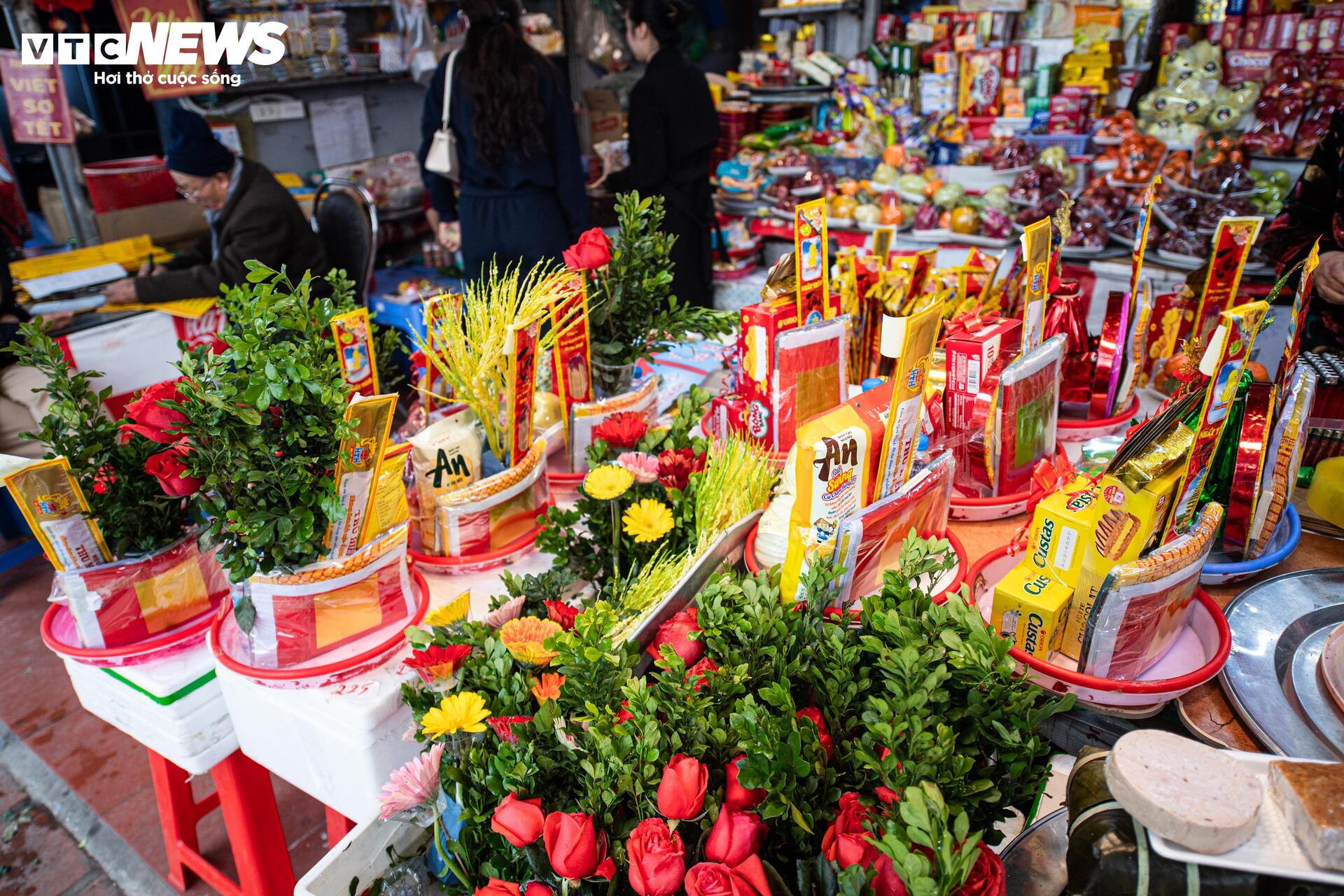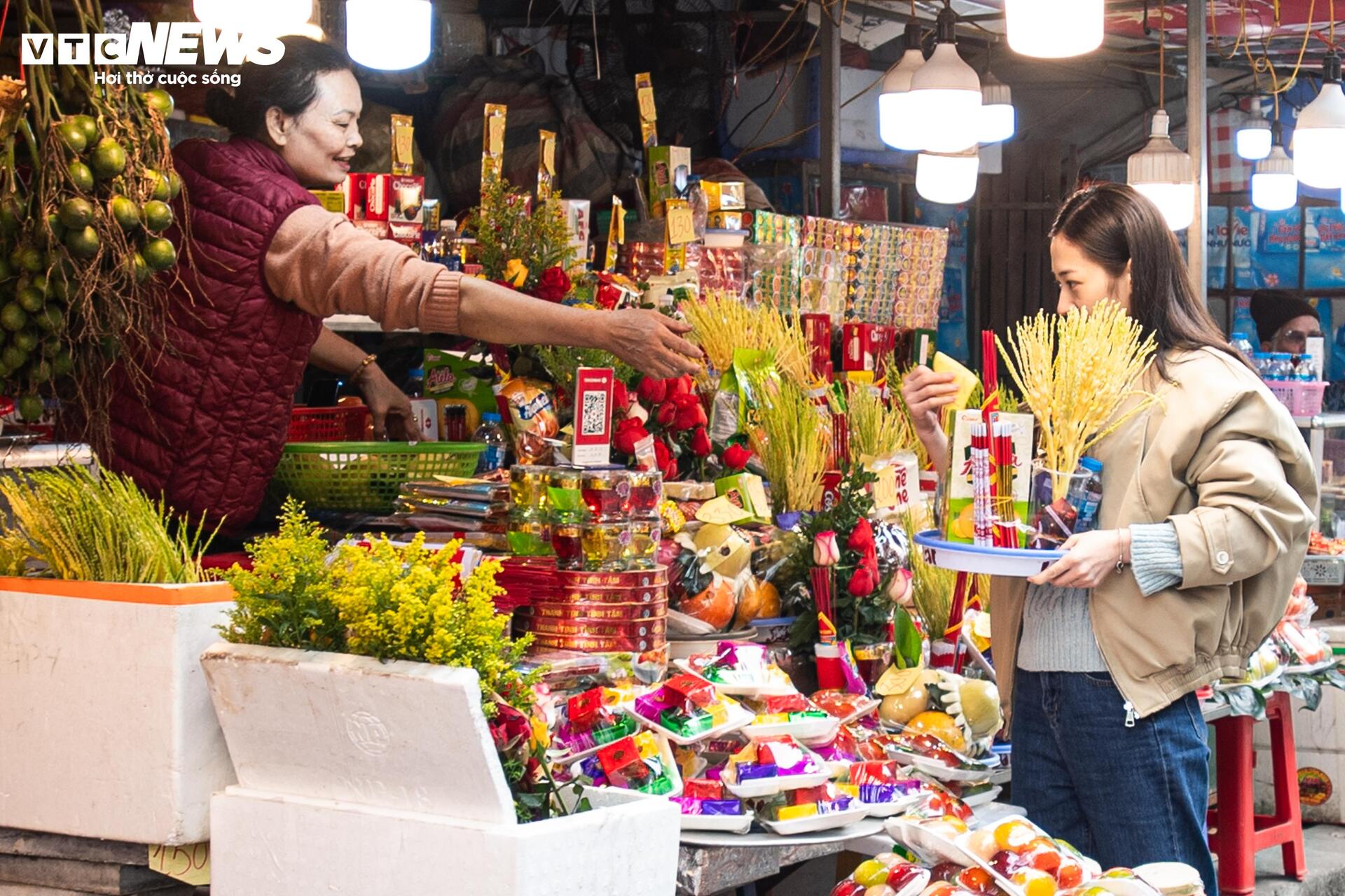 Chị Mai Hoa, chủ một sạp hàng lớn ở phủ Tây Hồ cho biết: "Nắm bắt tâm lý khách muốn nhanh gọn, chúng tôi đã chuẩn bị sẵn hàng trăm mâm lễ từ sáng sớm. Các loại hoa quả nhập khẩu kết hợp với bánh kẹo thương hiệu lớn đang bán rất chạy. Khách hàng năm nay chi tiêu cởi mở hơn, nhiều người không cần hỏi giá, miễn sao sắm kịp những mâm lễ đẹp nhất để tạ ơn cuối năm".