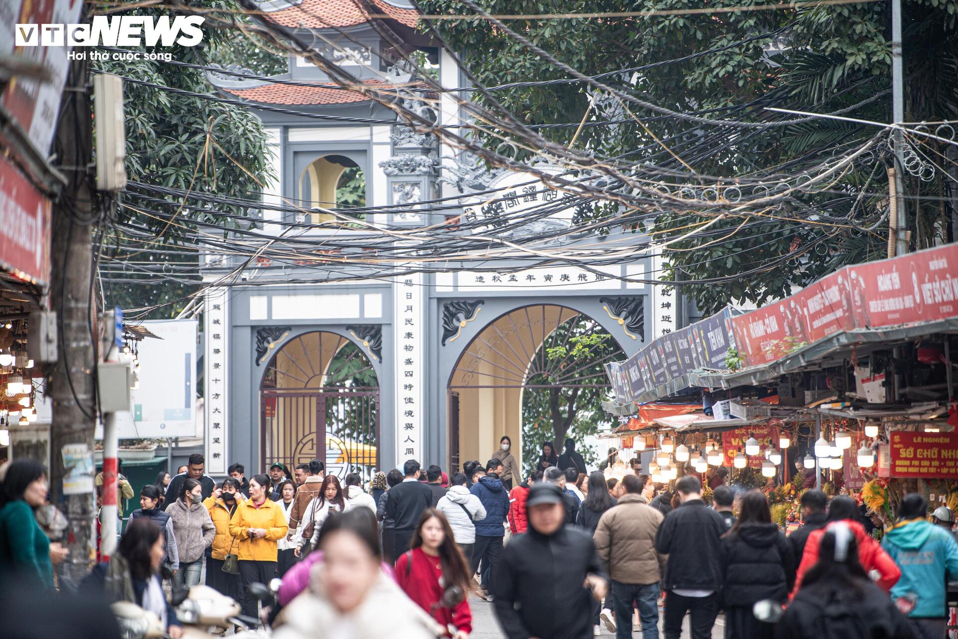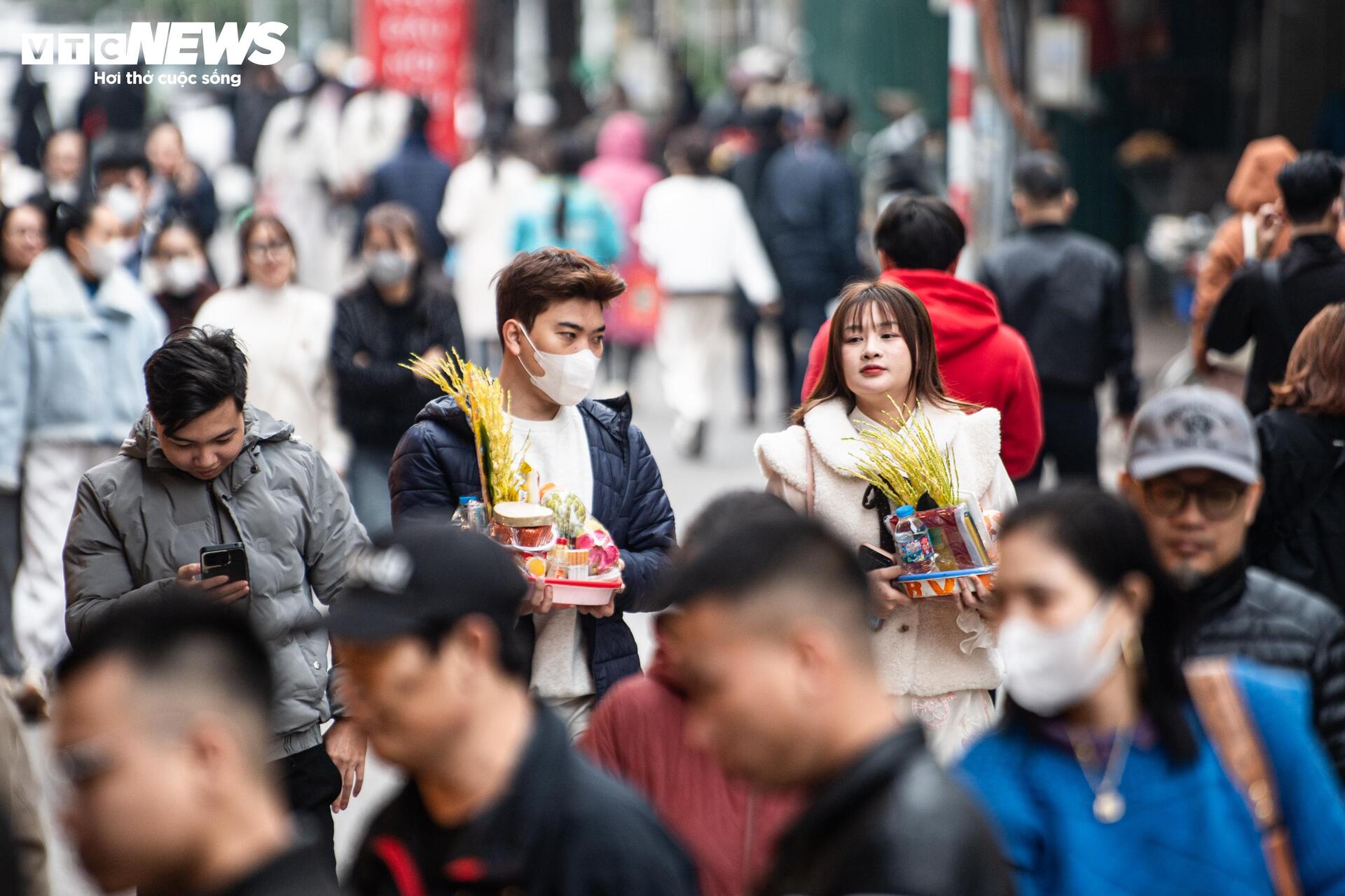 "Năm nay do Rằm tháng Chạp trùng với ngày đầu tuần nên đa phần khách là dân công sở tranh thủ giờ nghỉ trưa để đi lễ. Bắt đầu từ khoảng 11h - 12h, quầy hàng nào cũng quá tải, khách chen chân nhau mua sắm", bà Thu, chủ một sạp hàng mã tại đây cho biết.