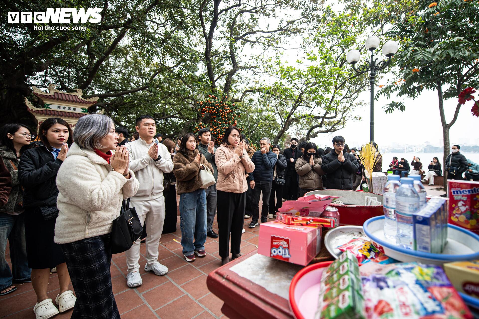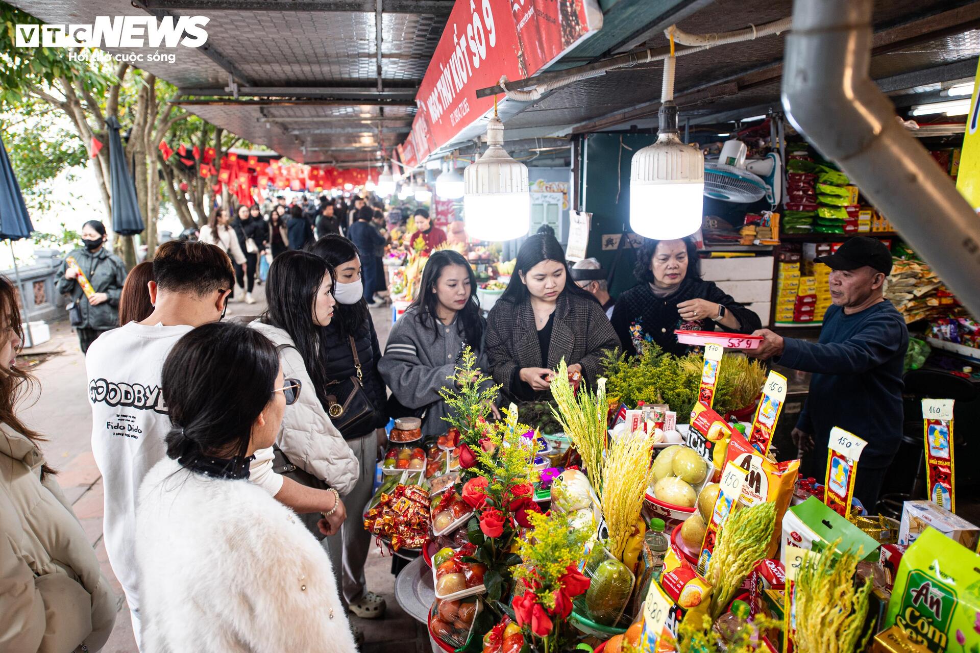 Chính vì thế, các gian hàng bán đồ lễ quanh Phủ Tây Hồ phải hoạt động hết công suất mới phục vụ kịp dòng người đi lễ.